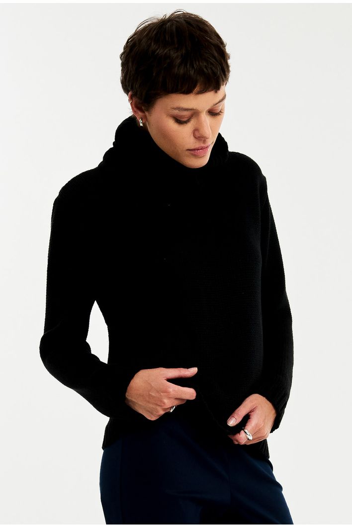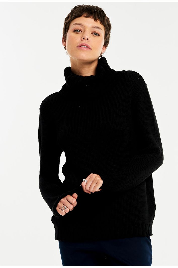 Atemporal, o tricot Vancouver possui ponto encorpado, gola alta, barrado e punho com detalhe canelado e comprimento oversized. Composição: 50% algodão 50% acrílico Modelo veste tamanho P