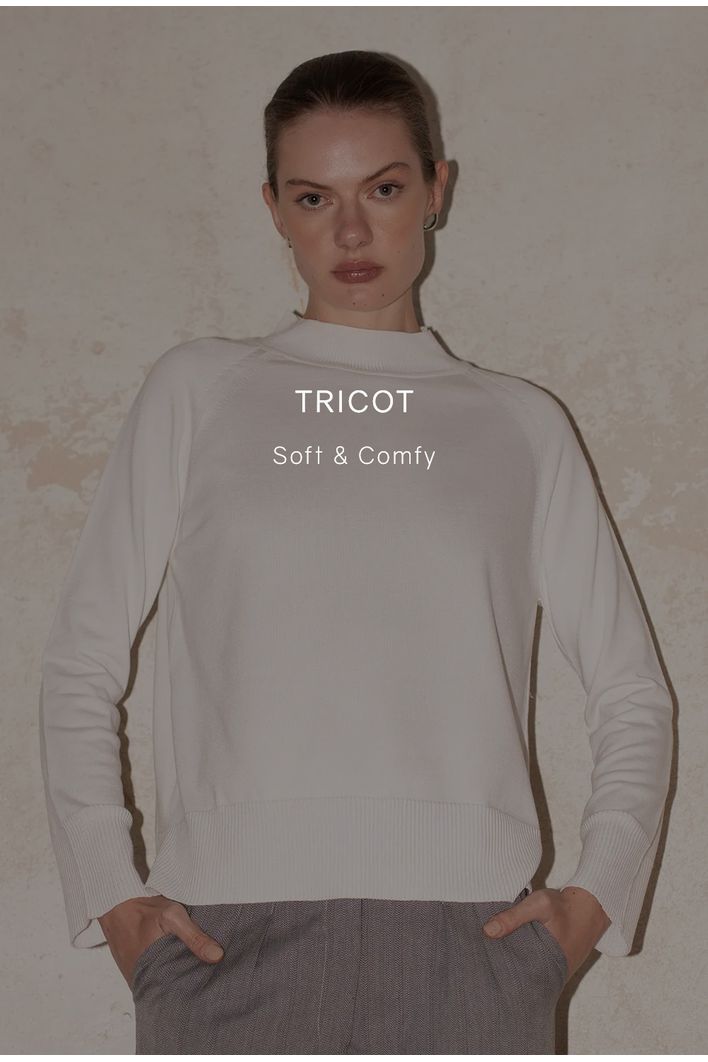 Básica e minimalista, a blusa Matera é confeccionada em tricot super macio e não possui transparência. Com gola alta e shape soltinho, é uma peça perfeita para um closet inteligente.