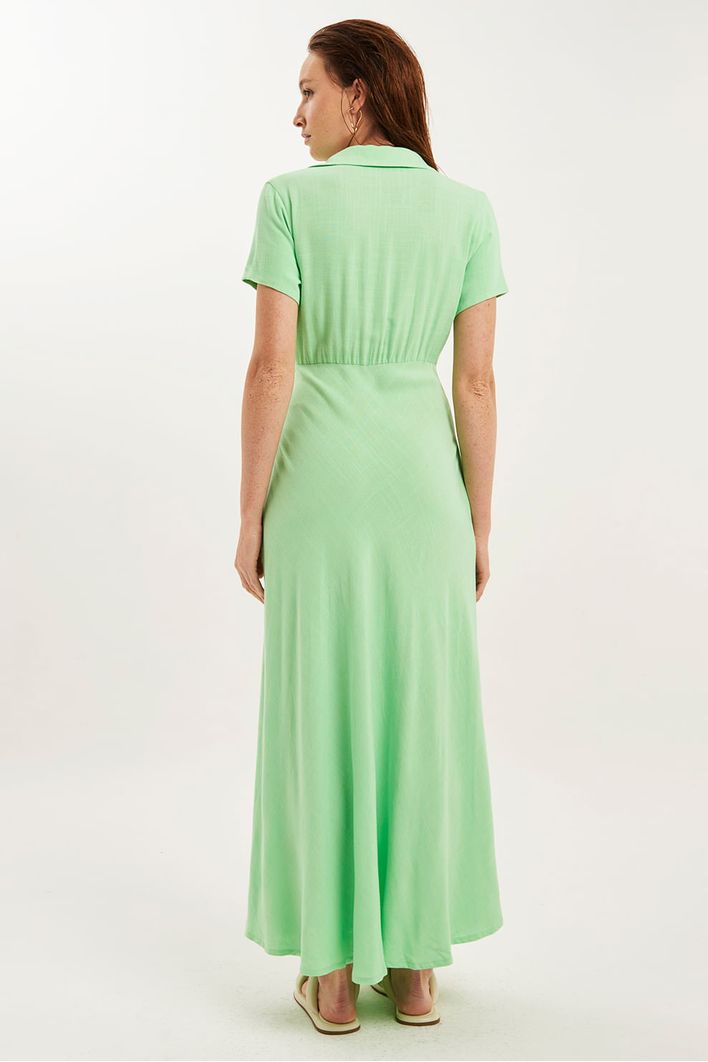 Vestido Palomas Linho Estonado Verde Claro - MyBasic