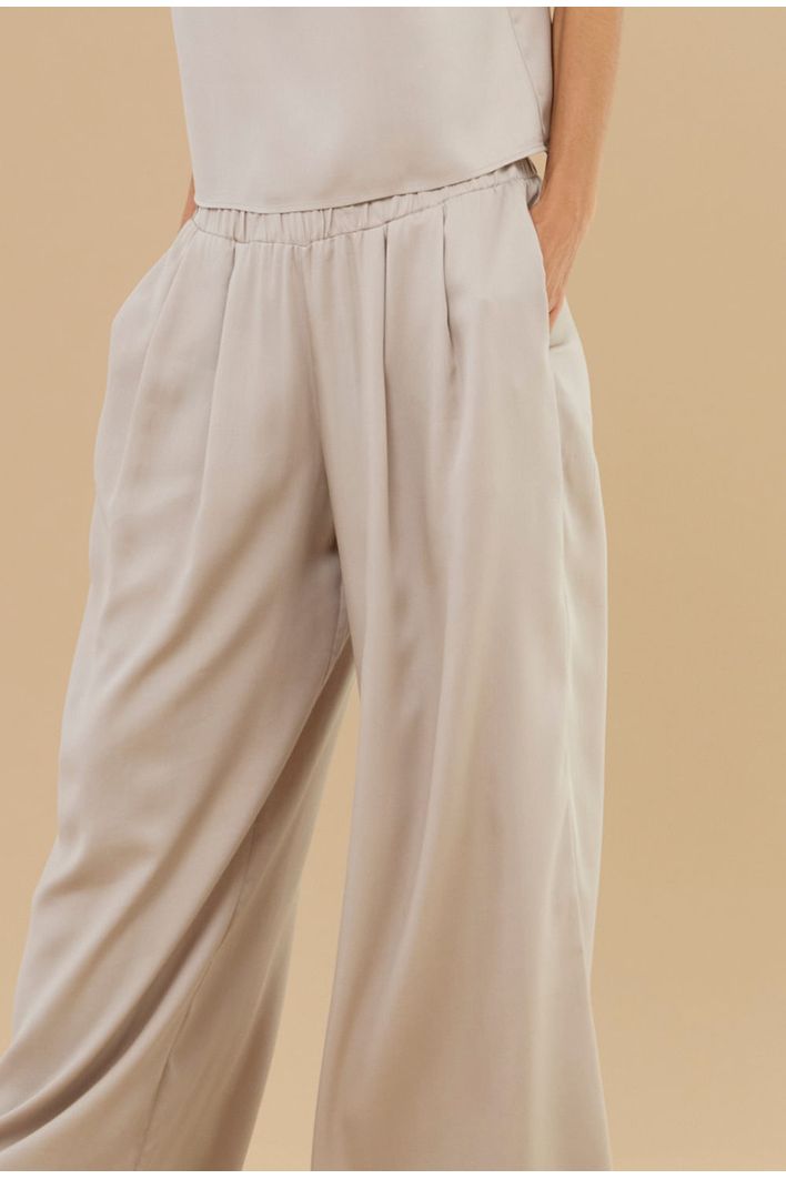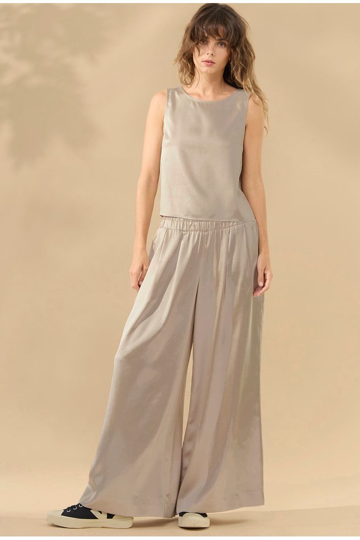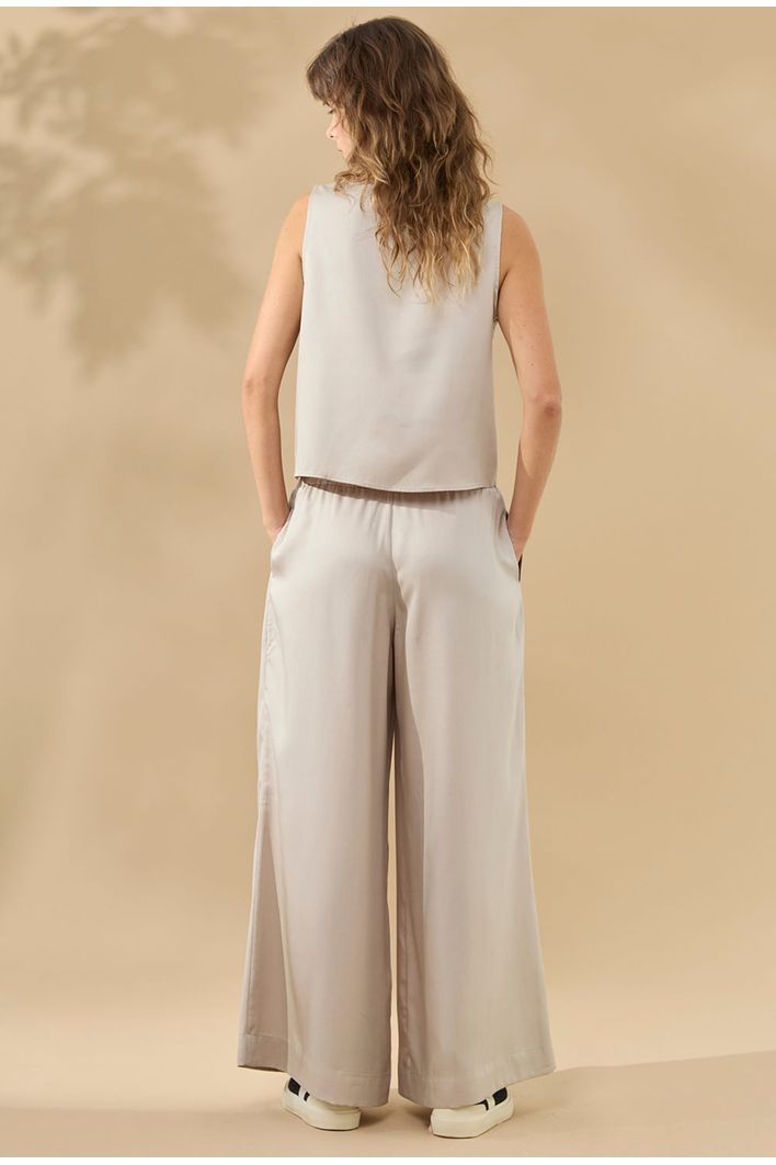 A nossa queridinha calça kalyves é uma peça de modelagem larguinha, cós largo de elástico e bolsos invisíveis. É uma peça confortável e muito versátil, possibilitando várias combinações. Fica linda quando combinada com partes de cima de comprimento mais curto, criando uma composição ousada, elegante e divertida, perfeita para uma noite de verão. Mais uma ideia para dias quentes é usá-la com nossa regatinhas básicas. Já nos dias frios é perfeita para usar com uma blusinha básica de manga longa e blazer como sobreposição. o legal deste look é que apesar de ser mais sofisticado e elegante pode facilmente ganhar um ar mais despojado quando combinado com acessórios despojados, como um boné por exemplo. a dica é abusar do styling, apostando em acessórios, bolsas e sapatos no mood que desejar.