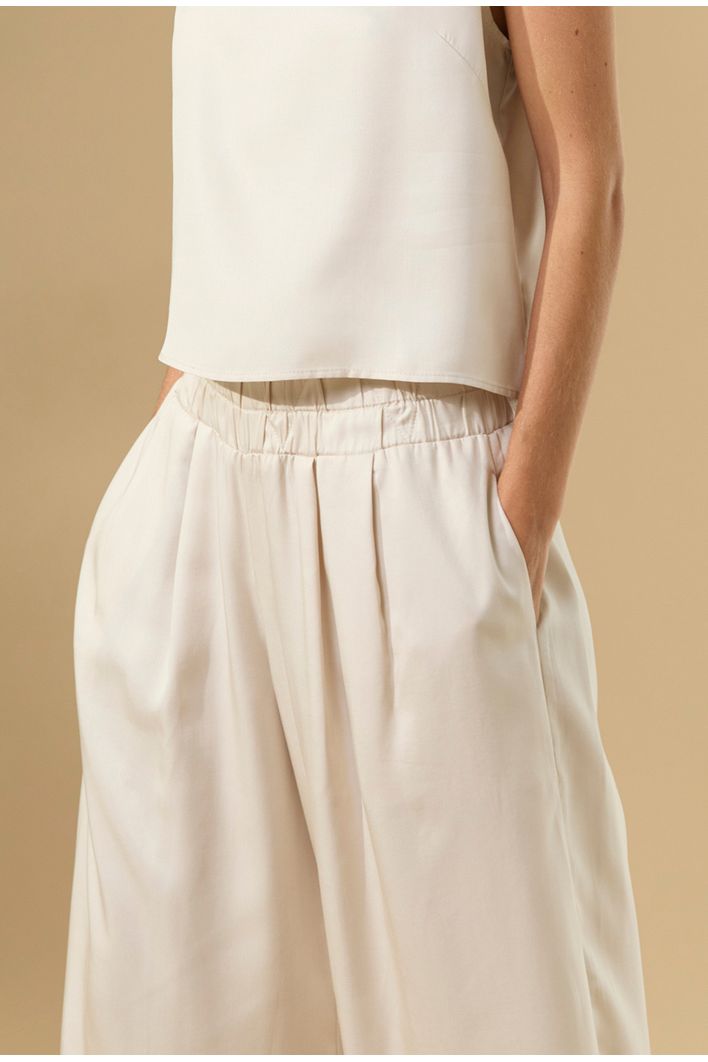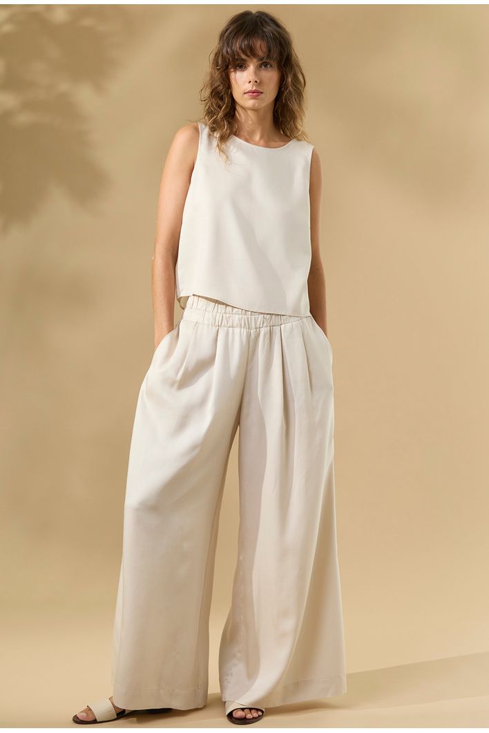 A nossa queridinha calça kalyves é uma peça de modelagem larguinha, cós largo de elástico e bolsos invisíveis. É uma peça confortável e muito versátil, possibilitando várias combinações. Fica linda quando combinada com partes de cima de comprimento mais curto, criando uma composição ousada, elegante e divertida, perfeita para uma noite de verão. Mais uma ideia para dias quentes é usá-la com nossa regatinhas básicas. Já nos dias frios é perfeita para usar com uma blusinha básica de manga longa e blazer como sobreposição. o legal deste look é que apesar de ser mais sofisticado e elegante pode facilmente ganhar um ar mais despojado quando combinado com acessórios despojados, como um boné por exemplo. a dica é abusar do styling, apostando em acessórios, bolsas e sapatos no mood que desejar.