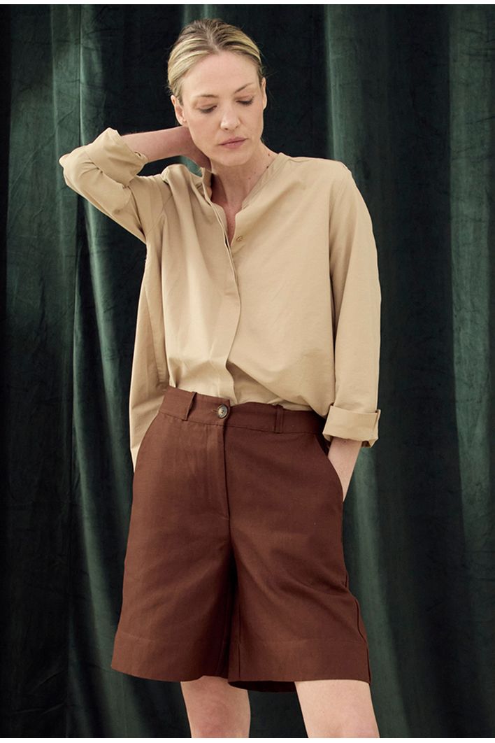 Desenvolvida em um blend premium de viscose Ecovero e linho, essa peça une sofisticação e sustentabilidade. Sua matéria-prima de fonte renovável é 100% biodegradável e certificada ambientalmente, garantindo um toque macio, frescor e caimento impecável.