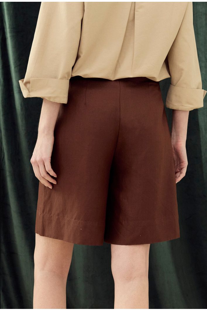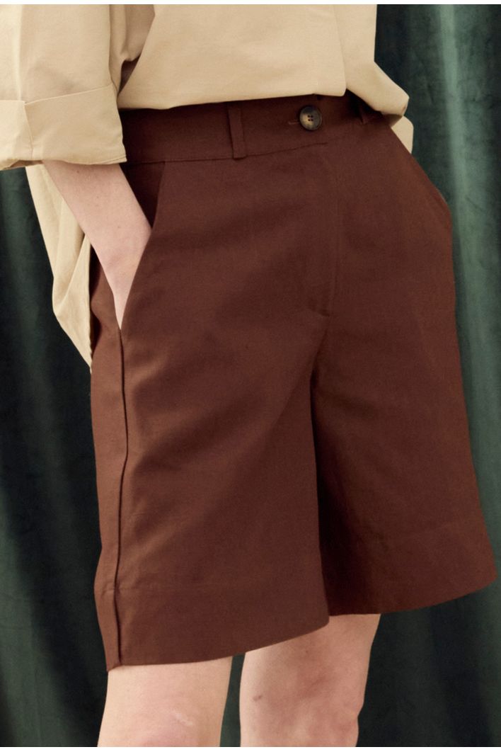 Com modelagem de alfaiataria, possui vincos frontais elegantes, comprimento acima do joelho e detalhes funcionais como bolsos laterais e passantes para cintos e faixas. O acabamento fica por conta do botão central delicado e sofisticado, que complementa com charme essa peça versátil.