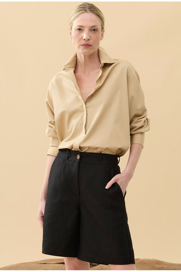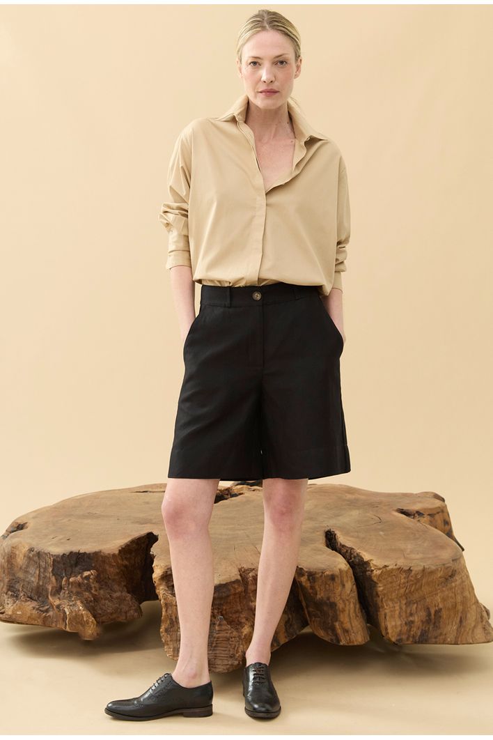 Desenvolvida em um blend premium de viscose Ecovero e linho, essa peça une sofisticação e sustentabilidade. Sua matéria-prima de fonte renovável é 100% biodegradável e certificada ambientalmente, garantindo um toque macio, frescor e caimento impecável.