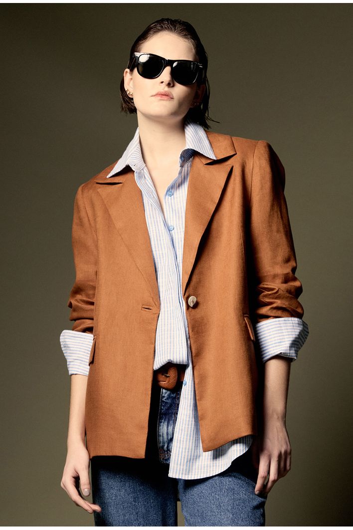 Com design sofisticado e acabamento impecável, este blazer é a expressão do estilo contemporâneo aliado à alfaiataria clássica. a modelagem estruturada valoriza a silhueta, garantindo um caimento elegante e atemporal. Possui gola lapela tradicional, fechamento frontal com botão único e bolsos com aba que adicionam um toque refinado à peça. Versátil e cheio de personalidade, transita com facilidade entre o casual e o formal, sendo ideal para composições que exigem elegância com conforto.