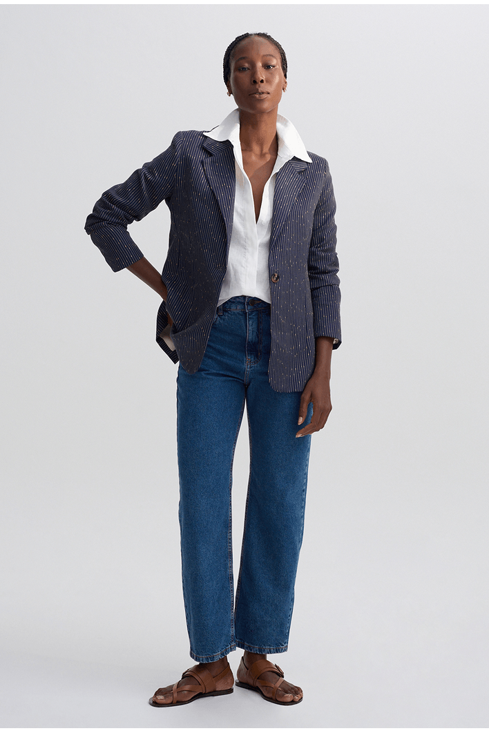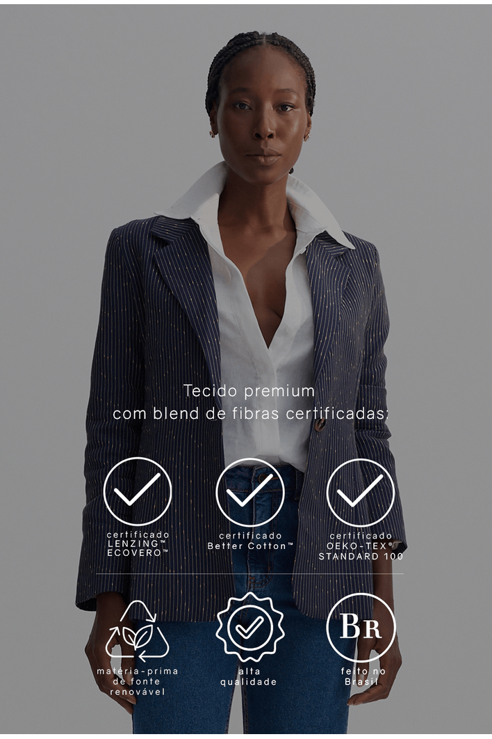 Conta com lapela clássica, fechamento frontal por botão e mangas com caimento alinhado, proporcionando um toque moderno à peça. Ideal para compor produções formais com camisa e calça de alfaiataria, ou para criar combinações mais despojadas com jeans e t-shirt.