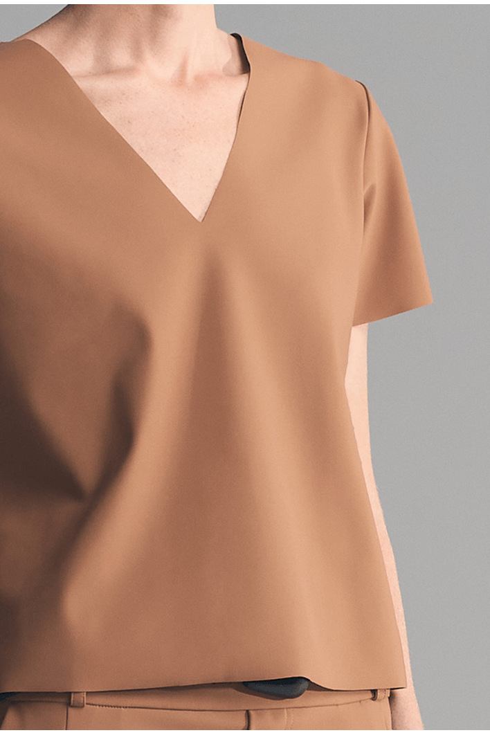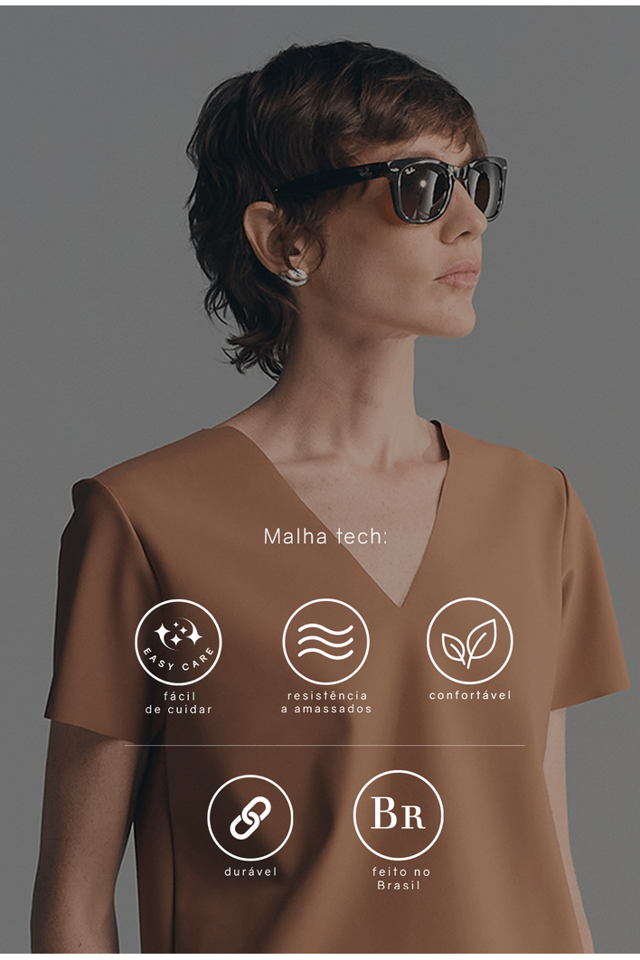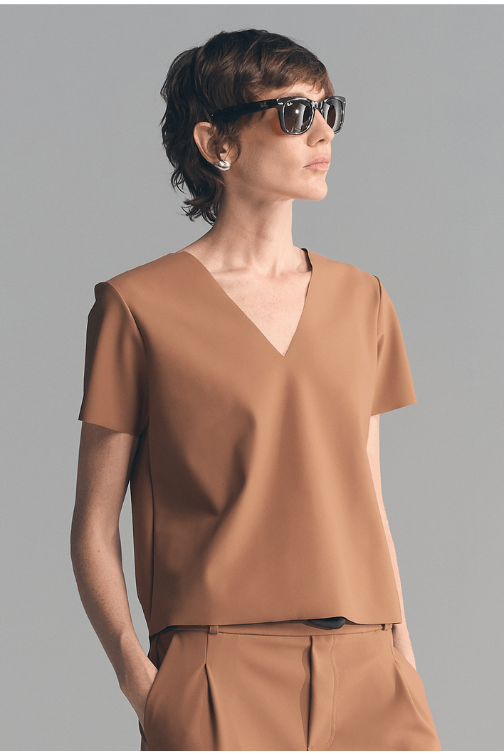 Blusa Adão em gola V, com modelagem minimalista e moderna, esta blusa de manga curta é ideal para compor looks sofisticados e confortáveis. O decote em V valoriza o colo de forma elegante, trazendo leveza ao visual. Produzida em tecido tecnológico de alta qualidade, oferece toque macio, caimento impecável e elasticidade que garante liberdade de movimento. Versátil, pode ser usada tanto em produções casuais quanto em combinações mais refinadas.