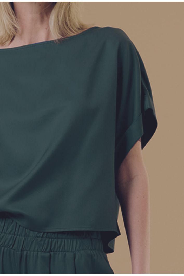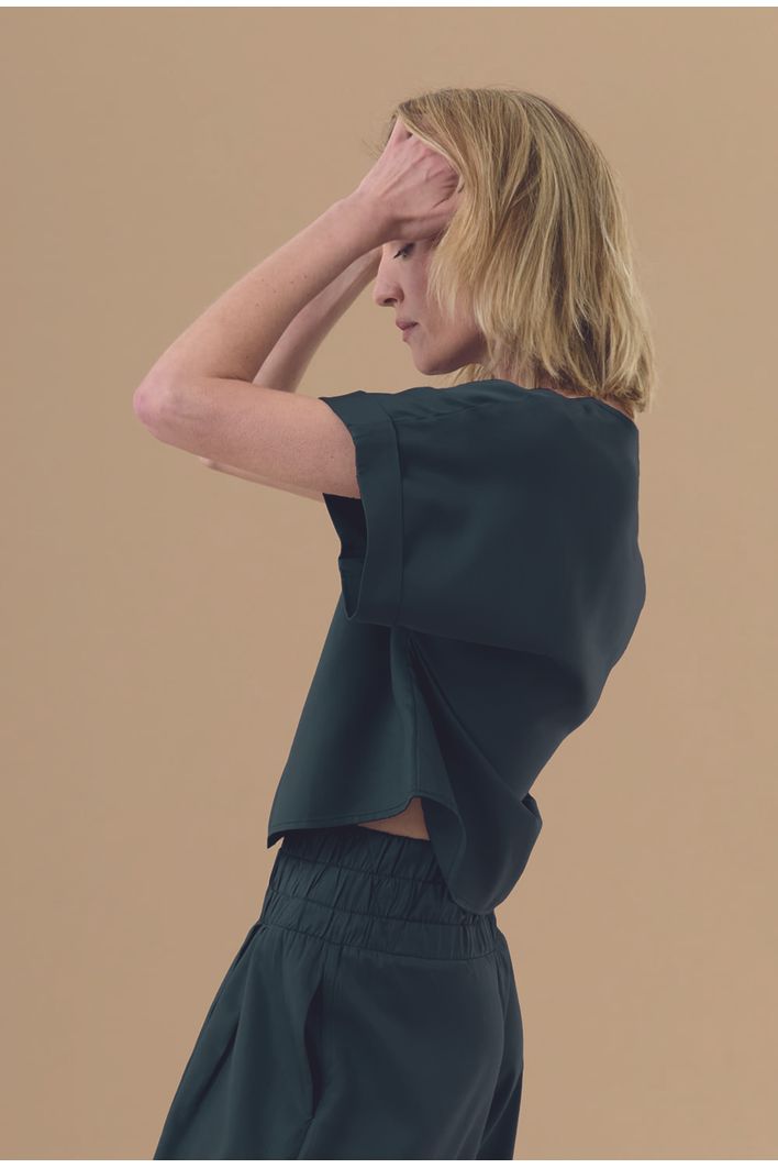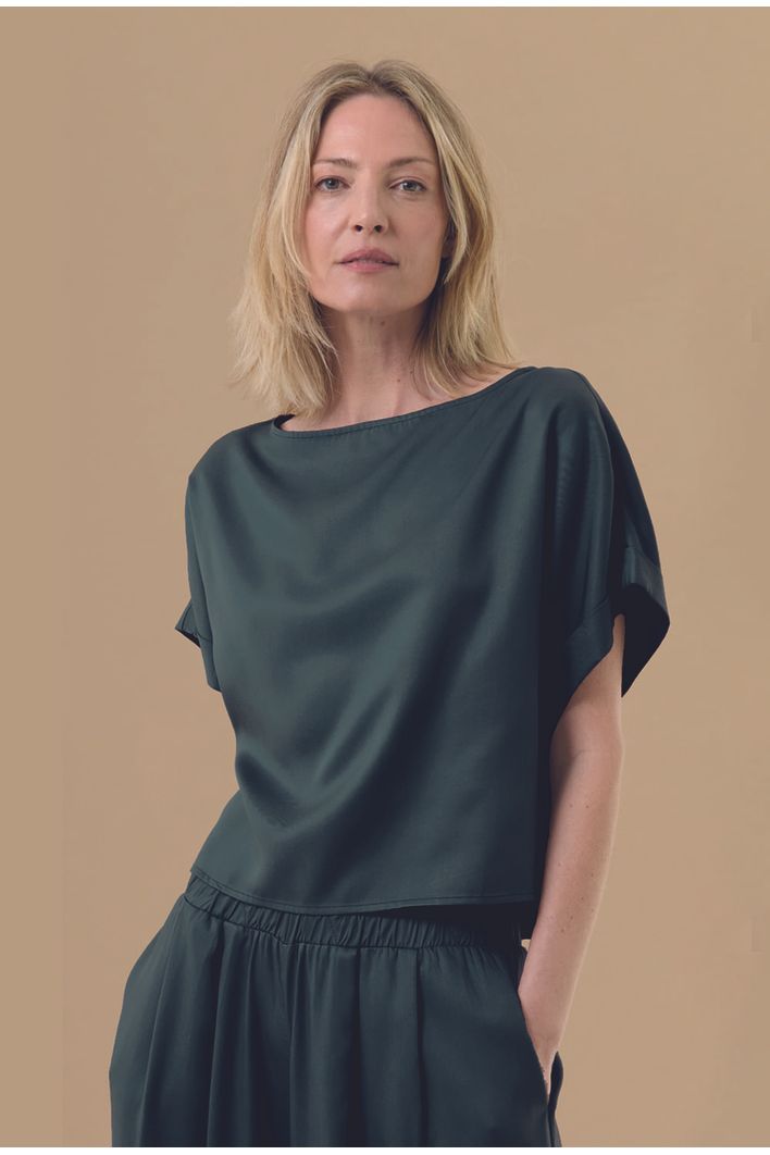 Modelagem ampla e reta, gola canoa e manga com dobrinha, detalhe que traz ainda mais charme para esta peça. É uma peça clássica com um toque de modernidade e é perfeita para quem gosta de se vestir com conforto sem perder a elegância.