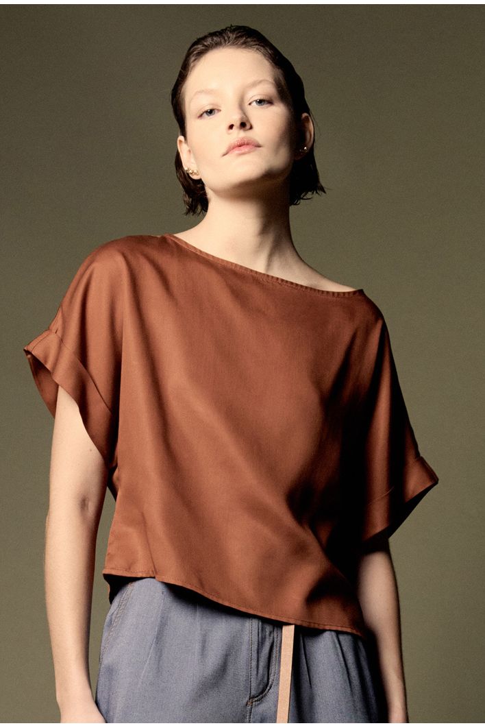 Blusa Ancara em Lyocell com Gola Canoa | MyBasic - MyBasic