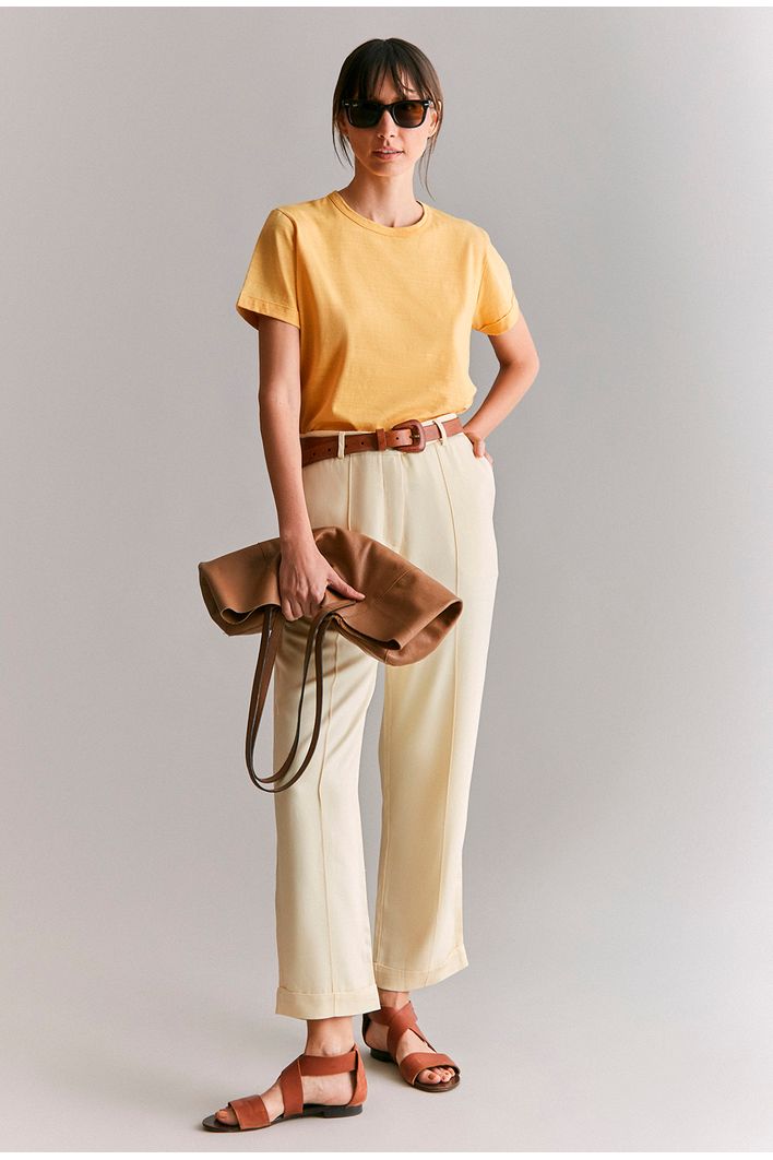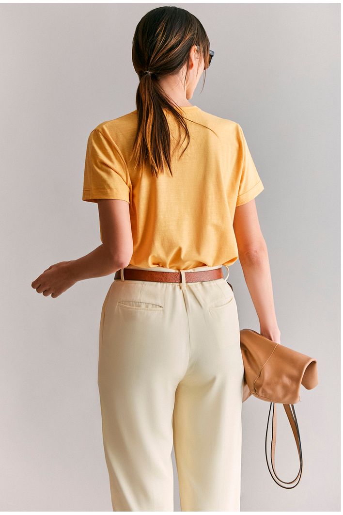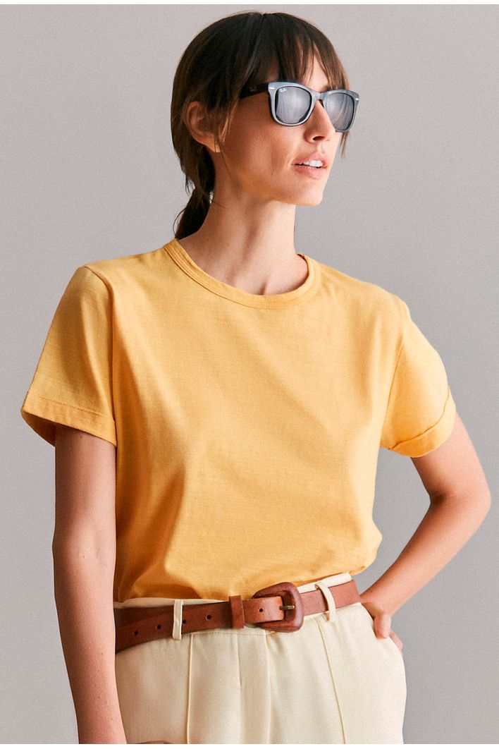 A certificação BCI (Better Cotton Initiative) é um selo que garante que o algodão usado no produto foi produzido de forma mais sustentável, promovendo o uso eficiente da água, a redução de produtos químicos perigosos e o respeito aos direitos dos trabalhadores. Essa peça passou pelo processo de tingimento natural: Conceito inovador de produção de tecidos sustentáveis com baixo impacto ambiental, seguindo rigorosos processos produtivos de qualidade e padrões socioambientais. · são originários de fontes naturais e renováveis; provenientes de sementes, folhas e frutos de cultivos socialmente responsáveis. · Fibras de origem natural certificadas; · O auxiliar de tingimento dos tecidos, foi desenvolvido com óleo de laranja, oriundo de resíduos da citricultura – que gera renda extra para os agricultores e evita a geração de CO2. · Redução de consumo na produção, em relação ao tingimento convencional, de 50% de água, 40% de energia e 90% de auxiliares químicos. · Peça na cor mostarda tingida com Curcuma.