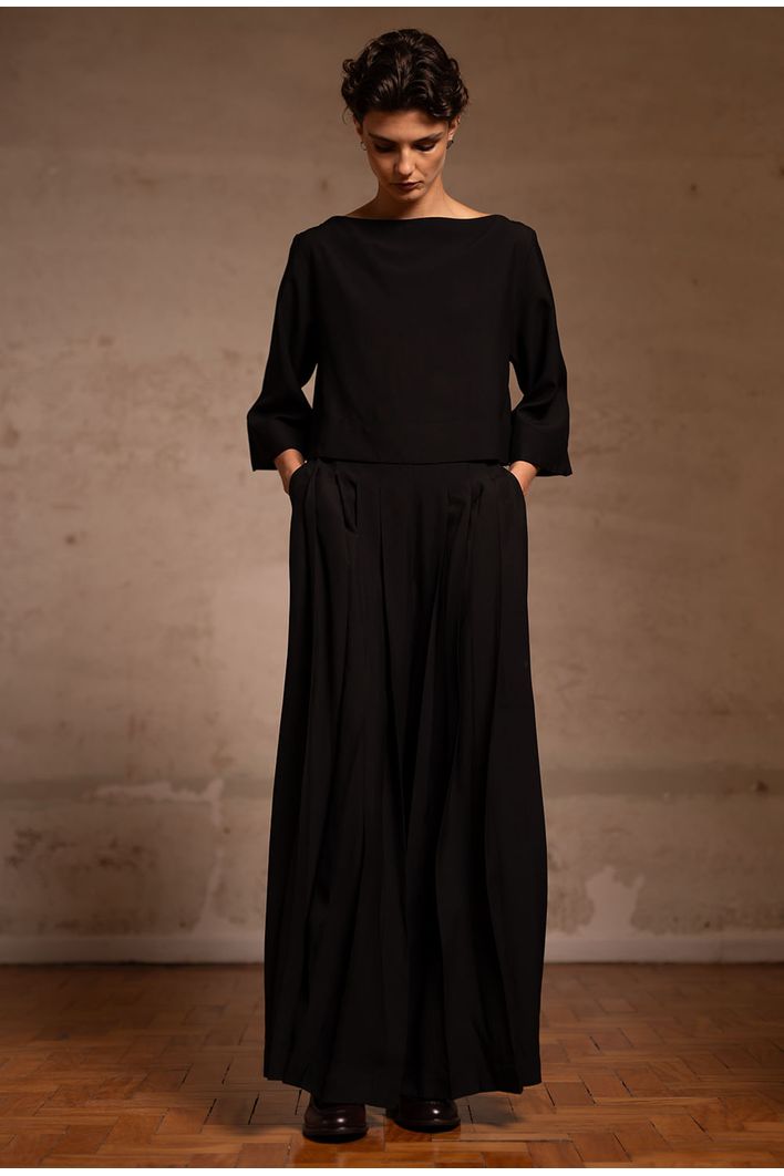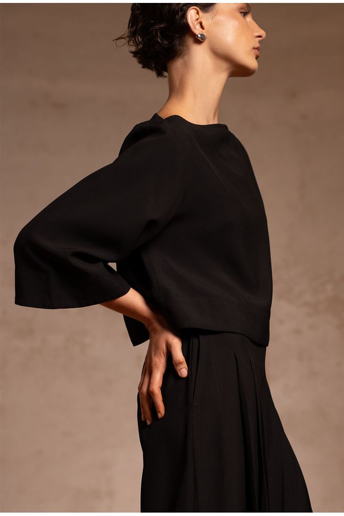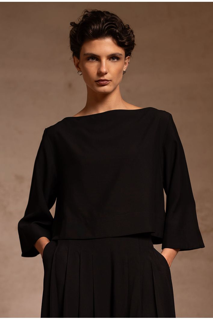 O melhor crepe patou que existe no mundo - pelo peso, qualidade, visual e certificações ambientais. De um lado, toque levemente creponado super sofisticado, e de outro, que fica em contato com a pele, toque acetinado, ultra confortável. Tecido com peso lindo perfeito para alfaiataria nobre. E mais: é feito com fibra de origem celulósica (madeira certificada), natural e biodegradável. A blusa Cals é a escolha ideal para um clima quente repleto de estilo e conforto. Com sua gola ombro a ombro, ela oferece um toque moderno e descontraído, permitindo liberdade de movimento e um visual despojado. O comprimento cropped é um detalhe atemporal que realça a silhueta e é perfeito para criar looks frescos e elegantes. Além disso, esse comprimento é ótimo para combinar com diferentes tipos de calças e saias, permitindo diversas composições de estilo. A peça é confeccionada em um tecido leve e fluido, de viscose e acetado, o que a torna perfeita para o clima mais quente, garantindo ventilação e conforto ao longo do dia. Versátil e sofisticada, a blusa Cals é adequada para qualquer ocasião, desde um passeio casual, passando por um dia de trabalho, até um jantar importante.