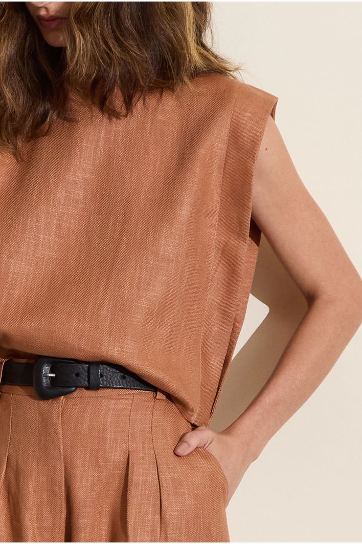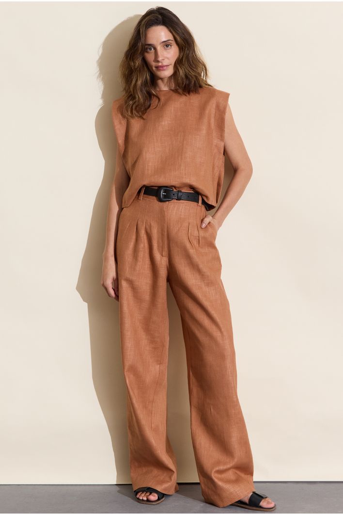 A blusa Catarino é confeccionada em algodão com rami, primo irmão do linho. O tecido rami tem vários benefícios, como ser durável, resistente, biodegradável e sustentável. A estética e benefícios são próximas do linho.