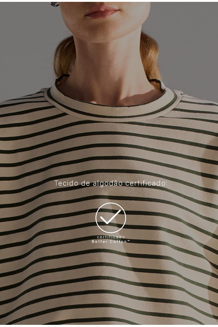 A certificação BCI (Better Cotton Initiative) é um selo que garante que o algodão usado no produto foi produzido de forma mais sustentável, promovendo o uso eficiente da água, a redução de produtos químicos perigosos e o respeito aos direitos dos trabalhadores.