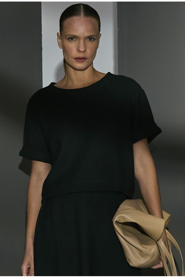 A Blusa Bequia é uma peça cheia de bossa, caracterizada por seu comprimento cropped e uma superfície maquinetada. Esses detalhes conferem uma delicadeza e elegância excepcionais à peça, tornando-a verdadeiramente única. A maquinetação adiciona textura e profundidade, criando um visual sofisticado e diferenciado. É o tipo de blusa que se destaca pelos detalhes, adicionando um toque especial a qualquer look.