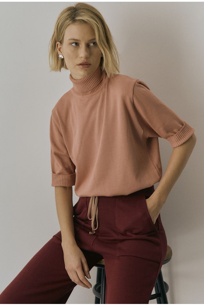 Sempre presente nas estações mais frias do ano, as peças com gola alta imprimem sofisticação a qualquer look. Produzida em tricô de tramas fechadas, a blusa daroca conta com shape soltinho e barrado canelado.