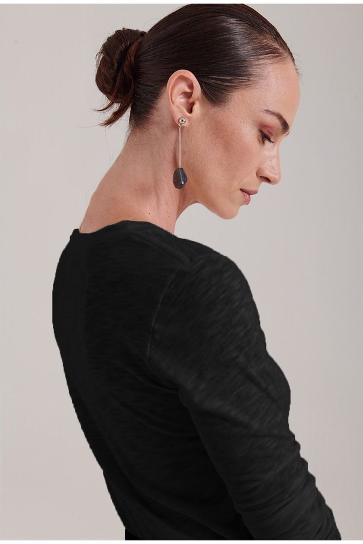 Perfeita para meia estação, a blusa Ferrara possui modelagem mais certinha, ideal para usar com casacos e tricots mais pesados. Confeccionada em algodão flamê e poliéster reciclado, é uma peça básica que funciona como base para vários looks.