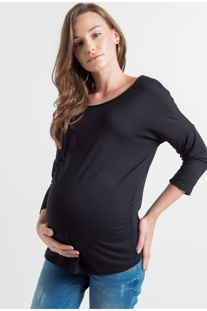 Produzida em viscose premium, a blusa Trento possui shape solto, decote redondo e manga 7/8. Ideal para gestante, a peça conta com pregas laterais, na altura da barriga, para maior conforto. Composição: 97% viscose 3% elastano Modelo veste tamanho P