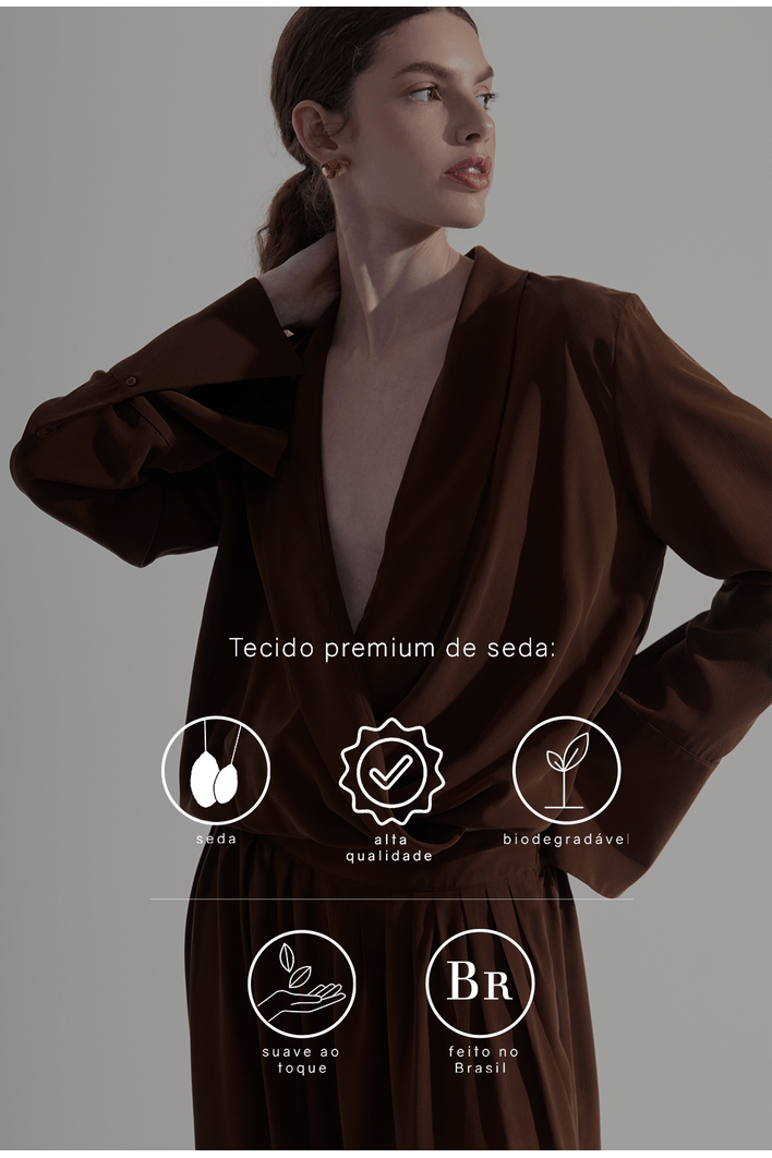 A Blusa Glasgow de seda traduz sofisticação em sua forma mais natural. Com toque ultramacio e caimento leve, o tecido realça o movimento fluido da peça, criando um visual elegante e contemporâneo.