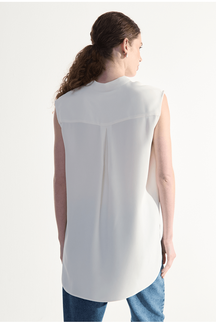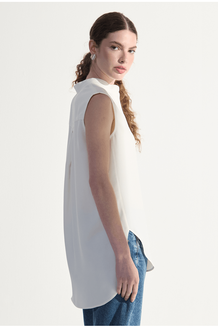 Blusa Gotland em Crepe Patou Gola Padre Off White