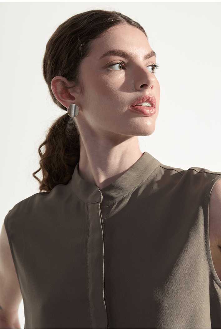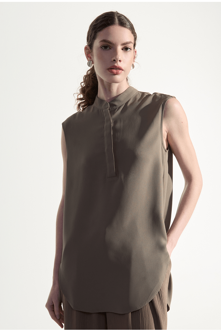 Blusa Gotland em Crepe Patou Gola Padre Oliva