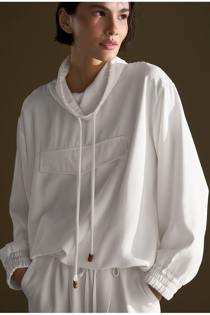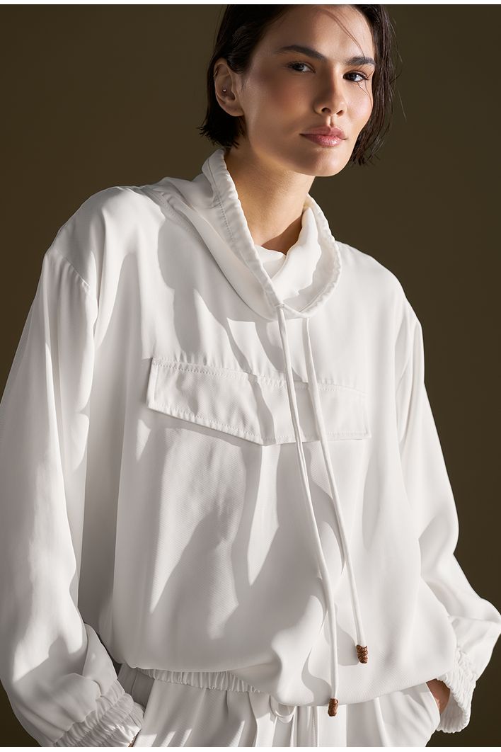 Versátil e cheia de estilo, a Blusa Jacó é perfeita para compor looks casuais com um toque moderno. Com modelagem ampla, ela possui gola alta com capuz ajustável por cordão e detalhe de ponteira. O bolso frontal com lapela adiciona um charme utilitário à peça, enquanto os punhos e barra com elástico garantem mais conforto e um caimento despojado. Ideal para os dias mais frescos, a peça combina bem com jeans, leggings ou até mesmo uma saia midi para um visual urbano e confortável — e também com a Calça Jalé, sua peça complementar para um conjunto elegante e harmônico.