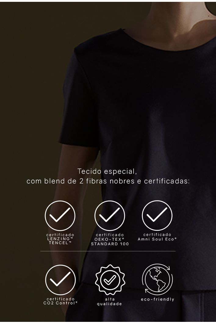 Lenzing Lyocell é concedida aos produtos fabricados com fibras de celulose provenientes da marca Tencel™ da Lenzing AG. O processo de produção dessas fibras é reconhecido por ser ecologicamente responsável, utilizando um solvente proveniente de uma fonte renovável de madeira. Essa certificação atesta que o produto foi confeccionado com fibras de alta qualidade, garantindo não apenas a durabilidade e o conforto, mas também um impacto ambiental reduzido em comparação a outros processos de produção têxtil.