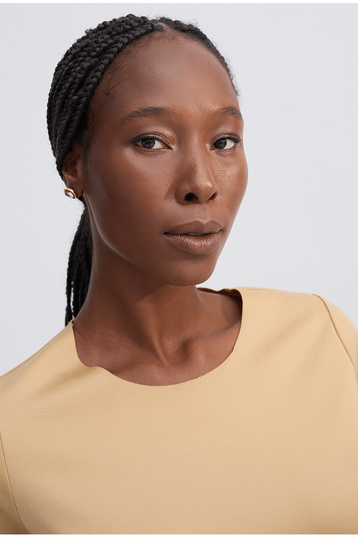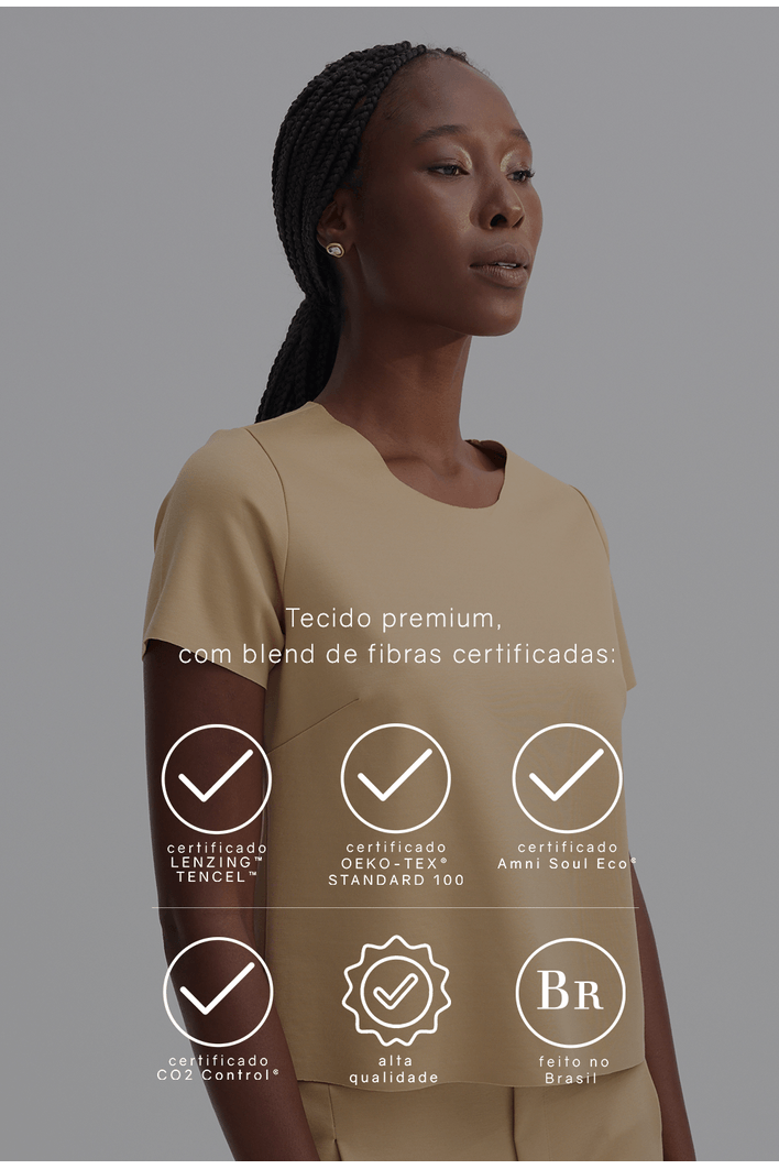 A blusa La Mona é o básico perfeito para quem ama unir conforto, praticidade e elegância na hora de se vestir. Confeccionada em lyocell, é uma peça atemporal e versátil, podendo estar presente nas mais diversas combinações. Possui gola U, mangas curtas, modelagem reta, pence no busto e acabamento a fio. Nossa La Mona é uma peça super fácil de combinar e capaz de atender diversos moods e momentos. Para quem busca um visual mais despojado, uma boa pedida é combinar a La Mona com peças de modelagem mais ampla, tanto para a parte de baixo quanto para sobreposições. Já para um mood mais sofisticado, aposte em peças de alfaiataria.