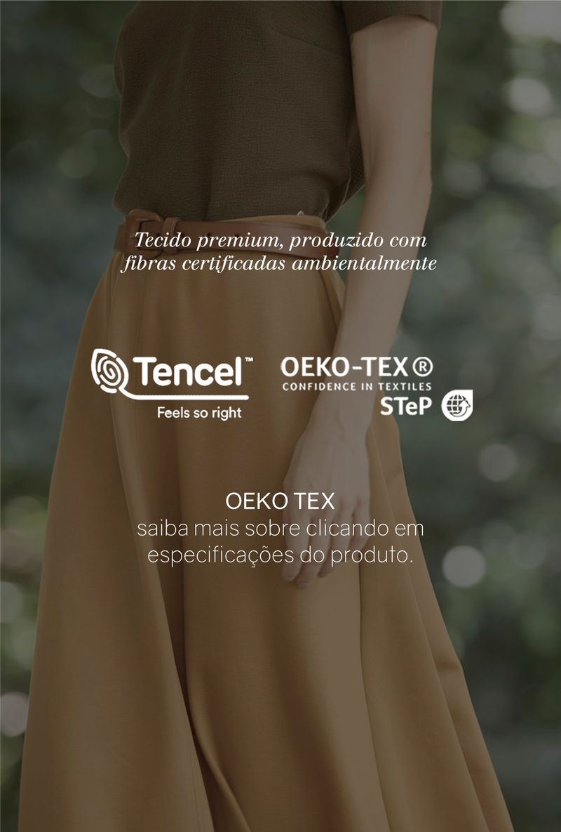 Modelo veste P.Saiba mais sobre o lyocell: aqui na MyBasic temos como principal objetivo fazer parte de uma cadeia produtiva saudável, permeando questões socioambientais em prol de um mundo melhor. É muito importante pensar em durabilidade quando falamos de peças sustentáveis, visto que, quanto mais duráveis, menos peças serão descartadas ao longo do tempo. Só no Brasil, são descartadas cerca de 4 milhões de toneladas de resíduos têxteis entre roupas e retalhos que não voltarão a ser usados.