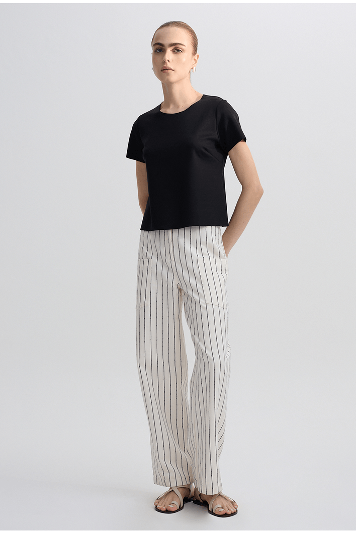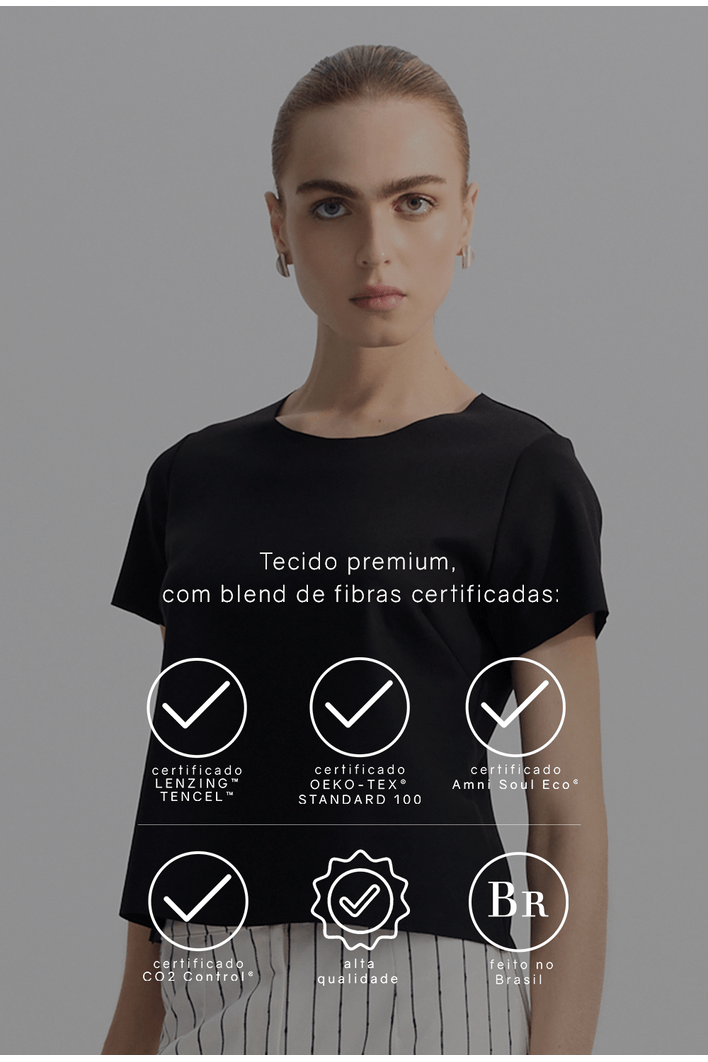 A blusa La Mona é o básico perfeito para quem ama unir conforto, praticidade e elegância na hora de se vestir. Confeccionada em lyocell, é uma peça atemporal e versátil, podendo estar presente nas mais diversas combinações. Possui gola U, mangas curtas, modelagem reta, pence no busto e acabamento a fio. Nossa La Mona é uma peça super fácil de combinar e capaz de atender diversos moods e momentos. Para quem busca um visual mais despojado, uma boa pedida é combinar a La Mona com peças de modelagem mais ampla, tanto para a parte de baixo quanto para sobreposições. Já para um mood mais sofisticado, aposte em peças de alfaiataria.