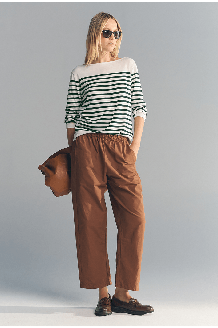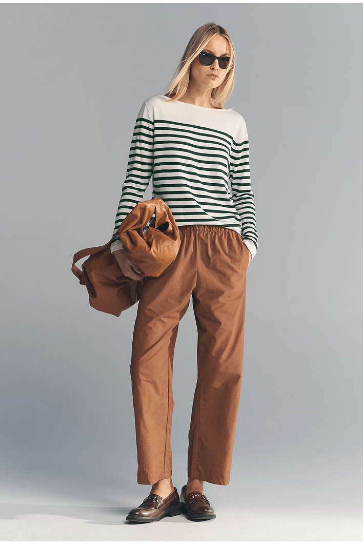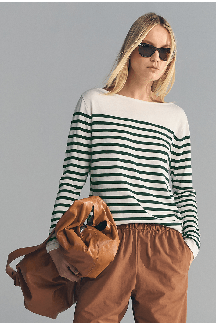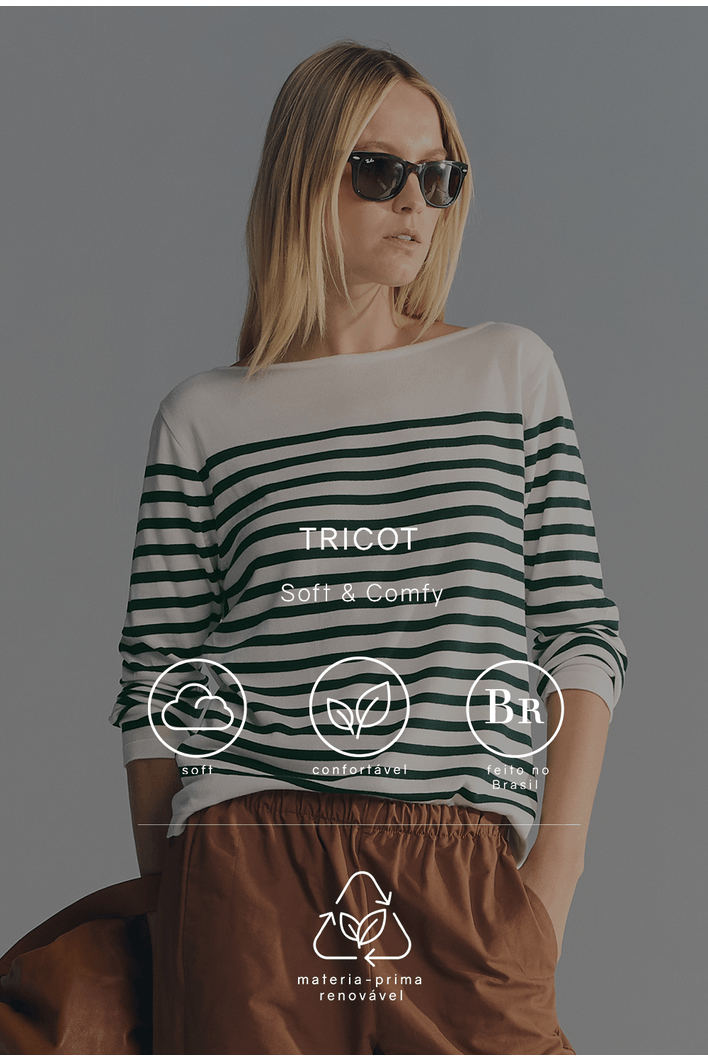 As listras reforçam a proposta clássica da blusa e permitem diversas combinações. A peça pode ser usada com calças, saias ou shorts, criando desde produções casuais até composições mais elegantes quando combinada com peças de alfaiataria.
