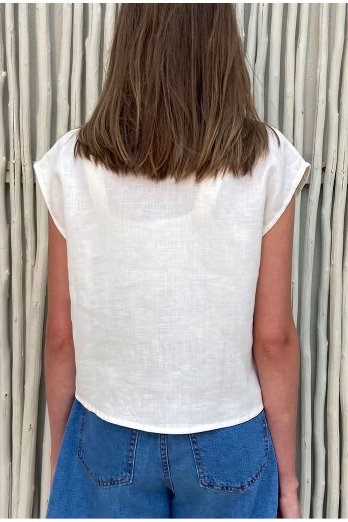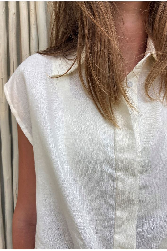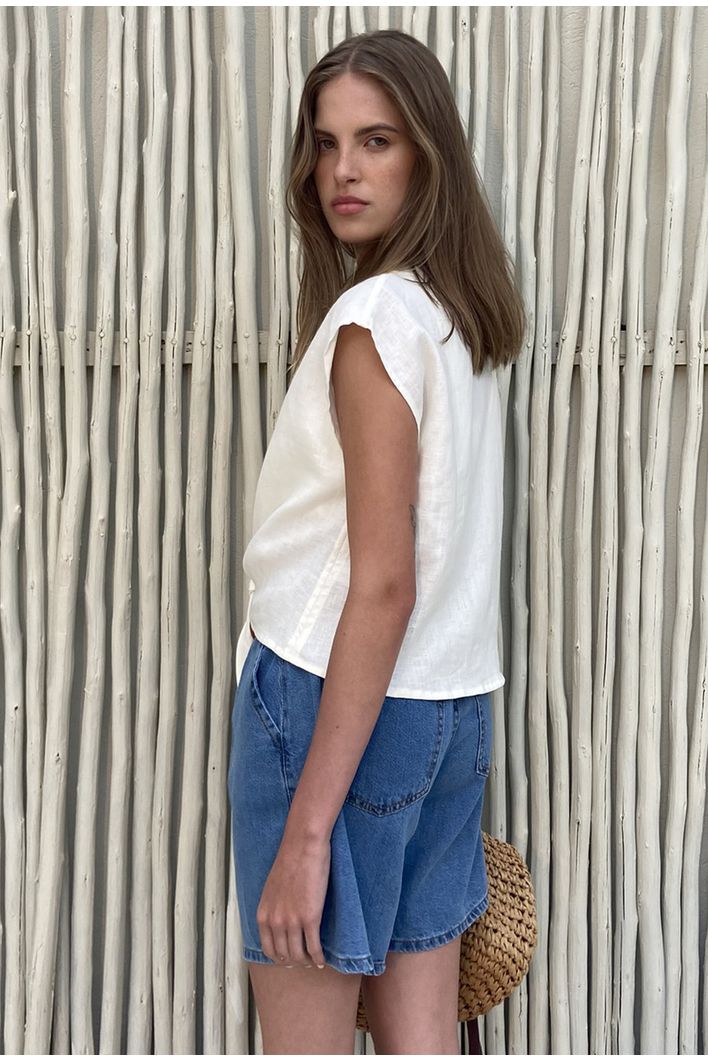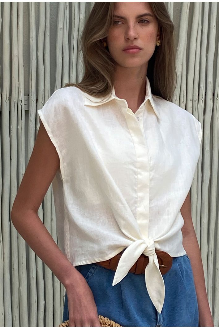 A blusa mahé é uma peça básica, versátil e moderninha, podendo estar presente nas mais diversas composições. É confeccionado em tecido 100% linho, o que garante o frescor da pele devido a alta capacidade de absorção de umidade. Possui golinha, mangas super curtas, fechamento em botões frontais e amarração na parte de baixo. Seu comprimento é médio e sua modelagem retinha.