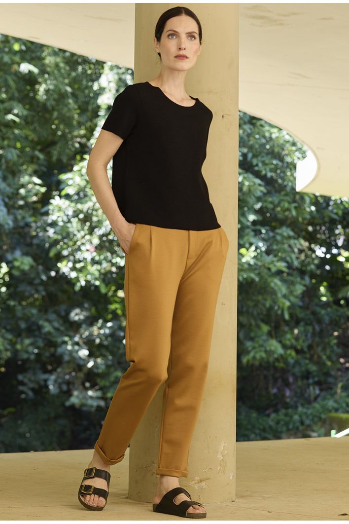 Além do visual refinado, a malha de bouclé é prática e funcional: não amassa, garantindo que você esteja sempre impecável. A poliamida utilizada em sua composição conta com a tecnologia Amni Soul Eco, que acelera a decomposição do tecido em condições adequadas de descarte.