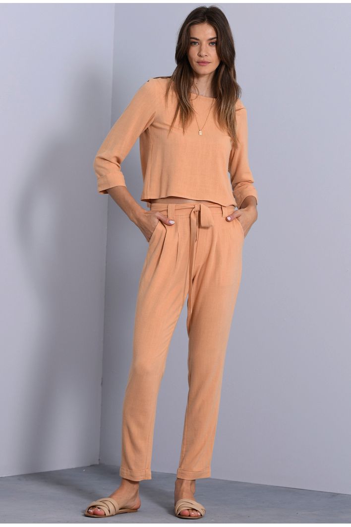 a blusa olândia foi feita como conjunto de nossa calça tobago, mas isso não impede de apostar em outras composições, nos mais diversos moods. Se a ideia é criar um visual mais despojado, que tal apostar em partes de baixo com tecidos mais casuais, como o denim por exemplo? Aposte em modelagens mais ajustadas, valorizando a forma do corpo e a abertura traseira de sua blusa. Já para quem deseja criar propostas mais sofisticadas, que tal peças de alfaiataria? Finalize com sapatos de salto baixo.