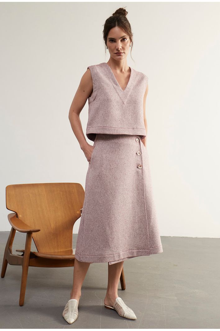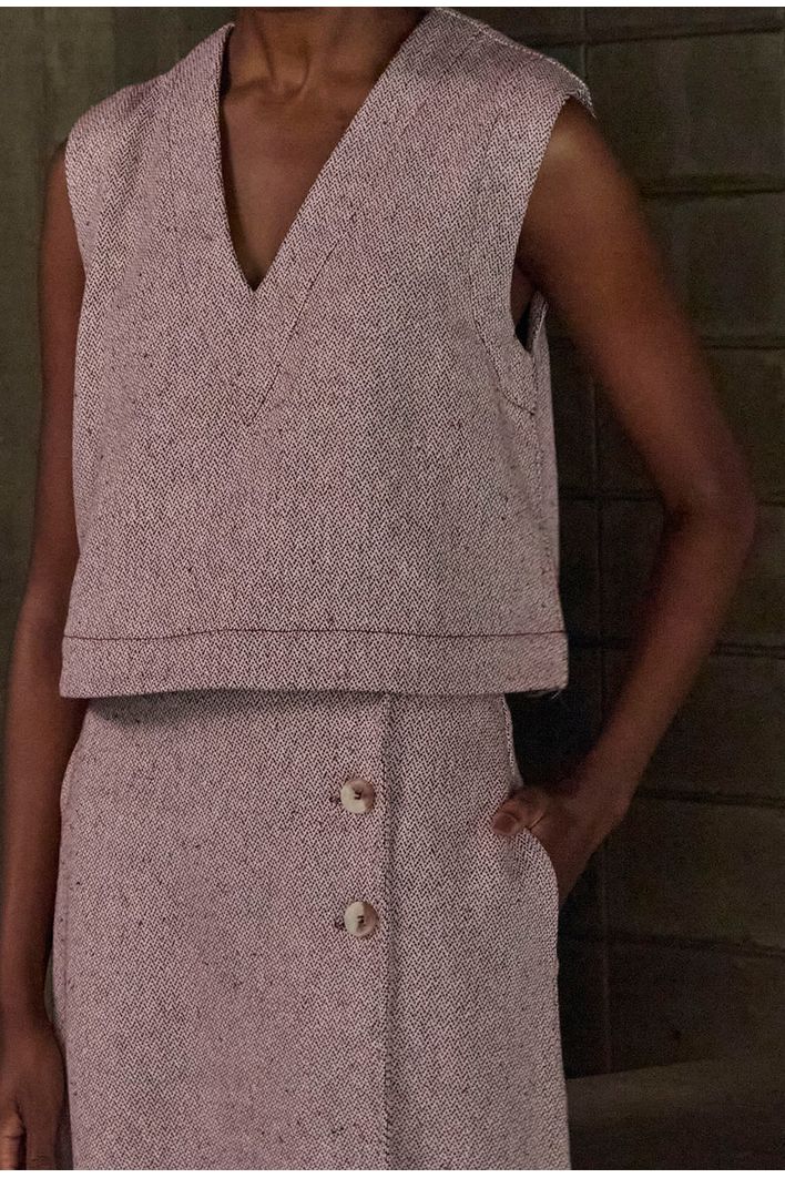 A Regata Cora é confeccionada em tecido 100% algodão, que além de ser natural e respirável, oferece conforto e um toque especial ao vestir. A superfície trabalhada, similar ao jacquard, traz uma textura delicada e sofisticada, elevando o visual da peça. Com um comprimento levemente mais curto, ela apresenta um decote em V, que alonga e valoriza a silhueta, proporcionando um ar de elegância e sutileza ao look. Os pespontos delicados adicionam ainda mais refinamento à regata. Faz conjunto perfeito com a Saia Catar para um visual monocromático sofisticado, mas também se adapta a outras composições, tornando-se uma peça versátil e cheia de personalidade para diversas ocasiões.