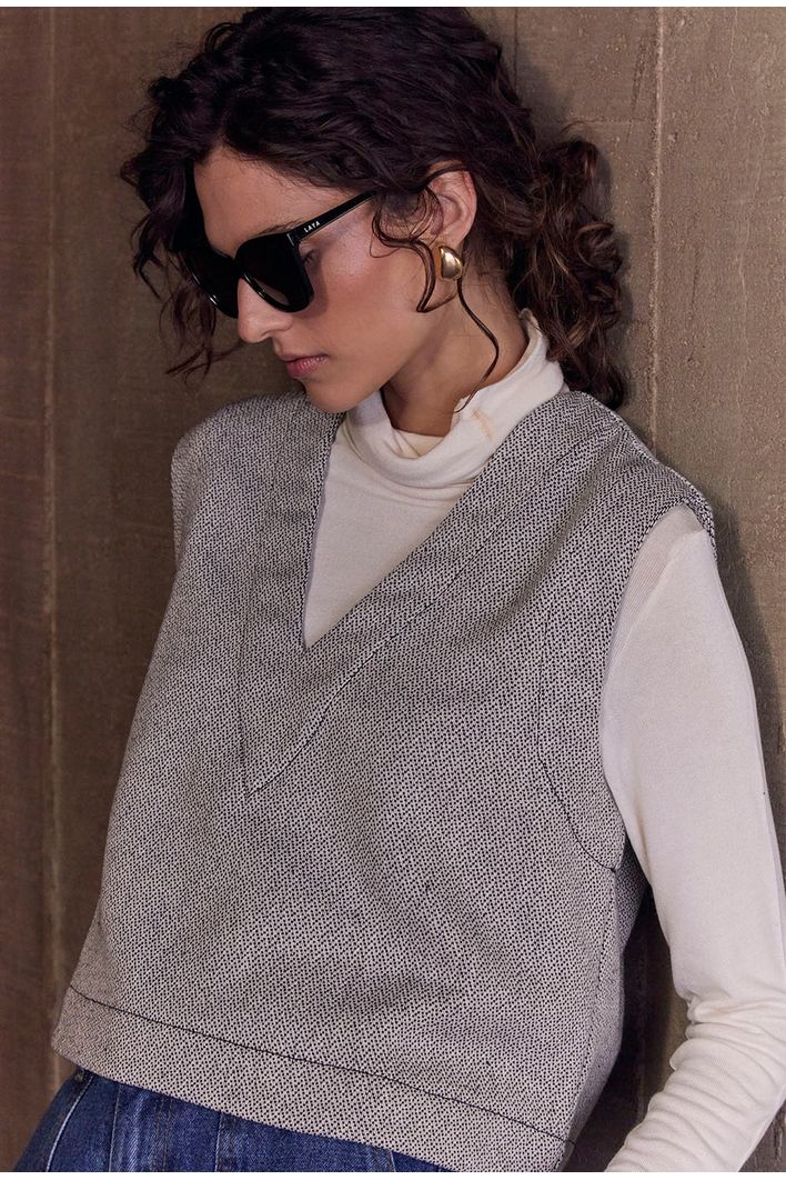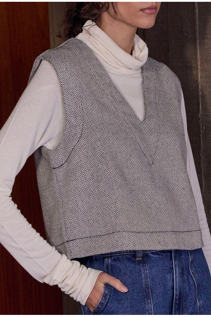 A Regata Cora é confeccionada em tecido 100% algodão, que além de ser natural e respirável, oferece conforto e um toque especial ao vestir. A superfície trabalhada, similar ao jacquard, traz uma textura delicada e sofisticada, elevando o visual da peça. Com um comprimento levemente mais curto, ela apresenta um decote em V, que alonga e valoriza a silhueta, proporcionando um ar de elegância e sutileza ao look. Os pespontos delicados adicionam ainda mais refinamento à regata. Faz conjunto perfeito com a Saia Catar para um visual monocromático sofisticado, mas também se adapta a outras composições, tornando-se uma peça versátil e cheia de personalidade para diversas ocasiões.