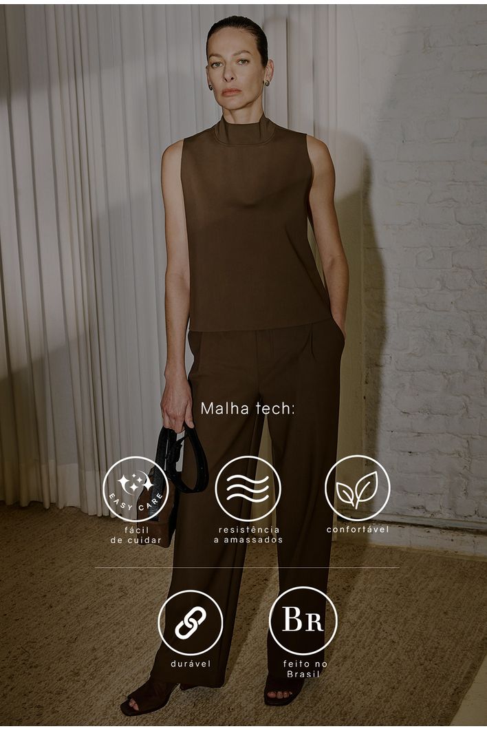 RoupasCalçasCalça Alfaiataria Reta Cascade Marrom