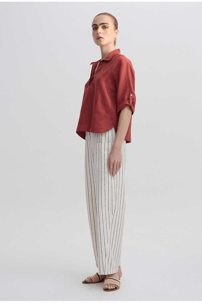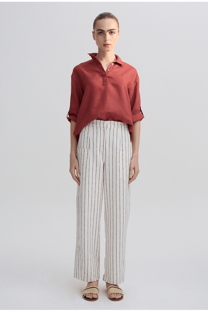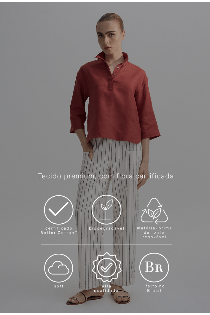 Calça Feminina Listrada de Alfaiataria em Algodão - MyBasic