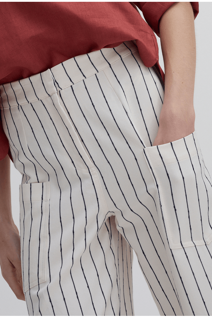 Calça Barrel Lur Off White Com Listras Marinho