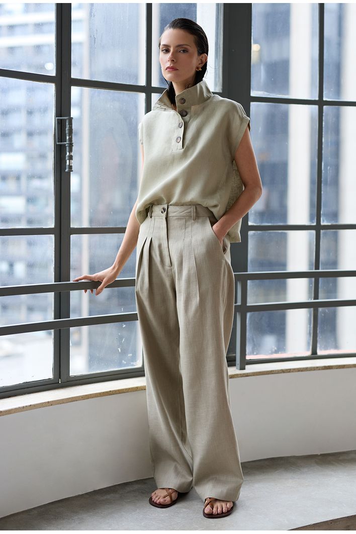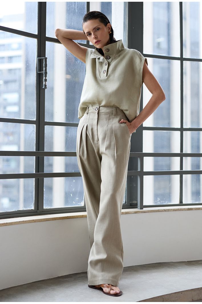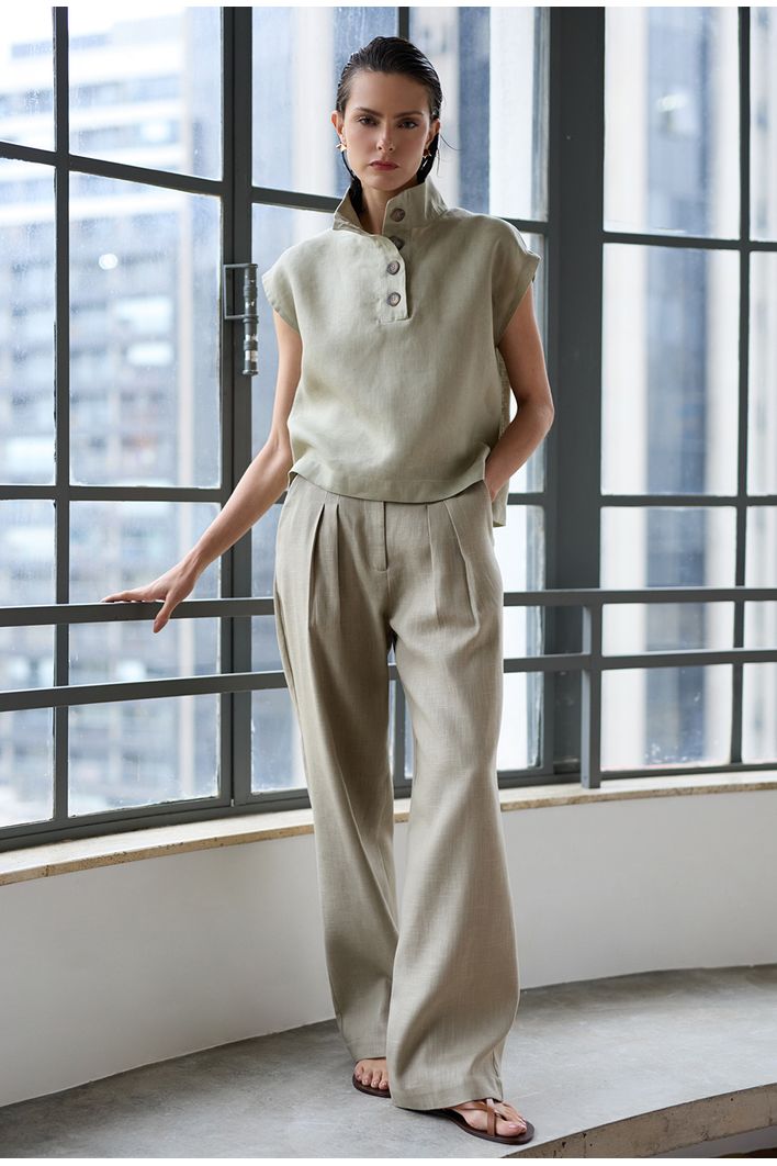 A calça Candros pode ser usada na versão monocromática com a blusa Catarino ou de forma descasada com t-shirts ou regatas. É versátil, atemporal e tem o caimento perfeito!