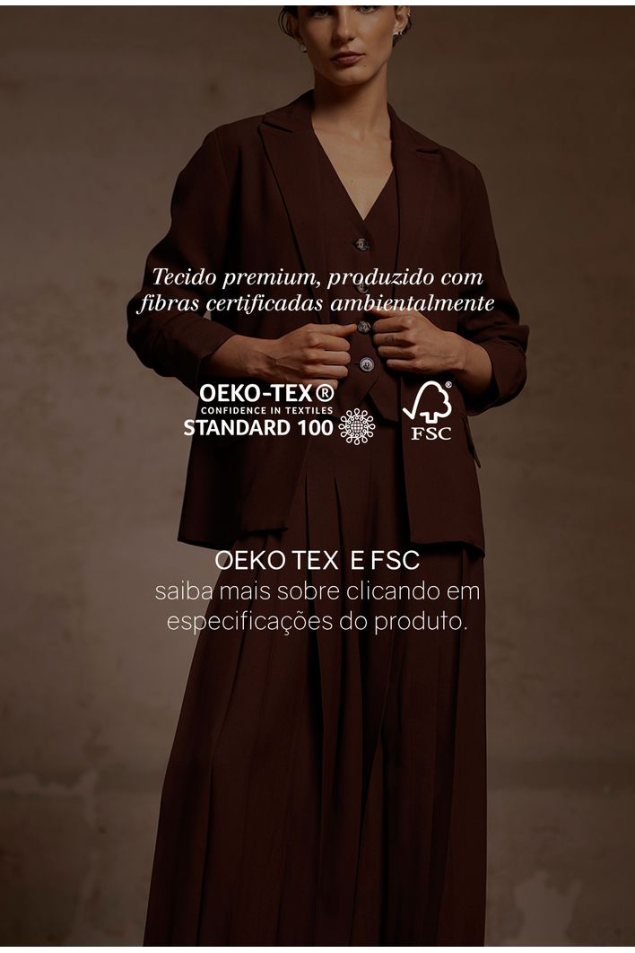 O tecido utilizado nesse modelo, possui duas certificações: FSC®, OEKO-TEX® -A certificação FSC é uma poderosa ferramenta econômica de desenvolvimento sustentável e gestão ambiental que combate o desmatamento, contribui para o uso responsável dos recursos florestais, promove a manutenção ou a melhoria dos serviços ecossistêmicos, como o abastecimento de água, estoque de carbono e valores culturais, ajuda na conservação e regeneração das florestas naturais e da vida silvestre, respeita o bem-estar, a dignidade e os direitos dos trabalhadores, das comunidades locais e dos povos indígenas e agrega grande valor socioambiental aos produtos certificados. -A certificação OEKO-TEX é um sistema independente que testa e certifica produtos têxteis para garantir que não contenham substâncias nocivas para a saúde humana e para o meio ambiente. Quando um produto possui essa certificação, significa que foi verificado e considerado seguro em termos de químicos perigosos, corantes alergênicos e metais pesados. É uma maneira de garantir que estão adquirindo produtos têxteis seguros e ecologicamente responsáveis.