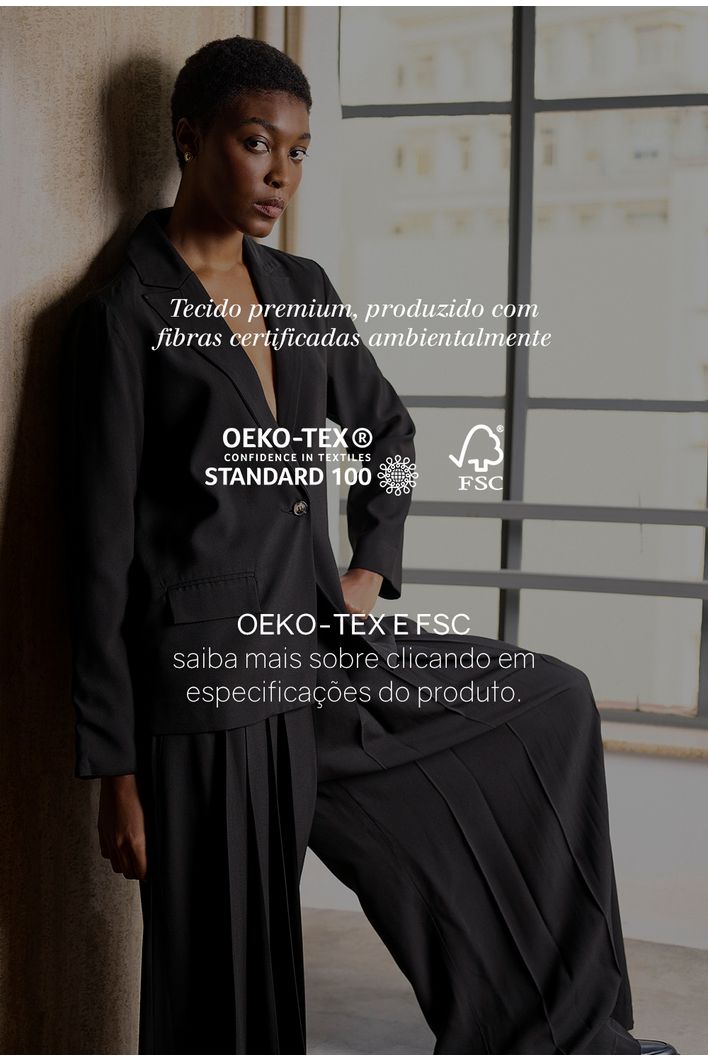 O tecido utilizado nesse modelo, possui duas certificações: FSC®, OEKO-TEX® -A certificação FSC é uma poderosa ferramenta econômica de desenvolvimento sustentável e gestão ambiental que combate o desmatamento, contribui para o uso responsável dos recursos florestais, promove a manutenção ou a melhoria dos serviços ecossistêmicos, como o abastecimento de água, estoque de carbono e valores culturais, ajuda na conservação e regeneração das florestas naturais e da vida silvestre, respeita o bem-estar, a dignidade e os direitos dos trabalhadores, das comunidades locais e dos povos indígenas e agrega grande valor socioambiental aos produtos certificados. -A certificação OEKO-TEX é um sistema independente que testa e certifica produtos têxteis para garantir que não contenham substâncias nocivas para a saúde humana e para o meio ambiente. Quando um produto possui essa certificação, significa que foi verificado e considerado seguro em termos de químicos perigosos, corantes alergênicos e metais pesados. É uma maneira de garantir que estão adquirindo produtos têxteis seguros e ecologicamente responsáveis.