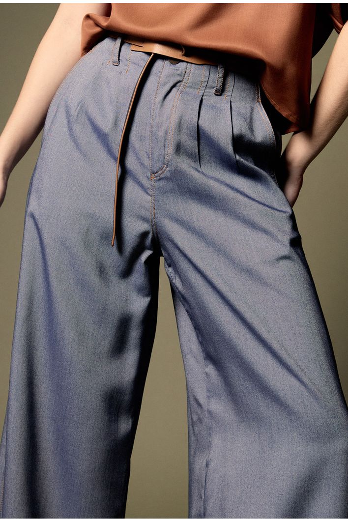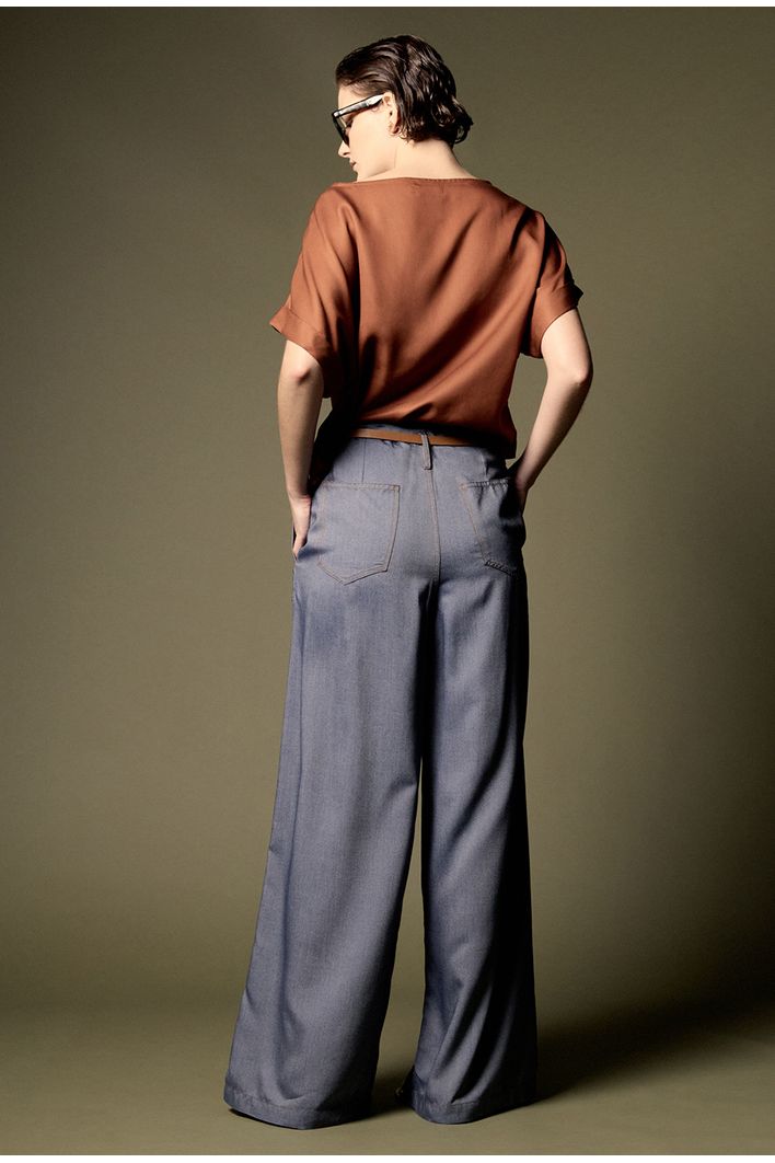 Calça Georgia de modelagem ampla com caimento leve e fluido, que proporciona conforto e elegância. Possui cintura alta com cós estruturado, pregas frontais que valorizam a silhueta e bolsos funcionais. o fechamento é feito por zíper e botões duplos, garantindo praticidade e um ajuste perfeito. Atemporal e versátil, é a peça ideal para produções modernas que unem estilo e bem-estar.