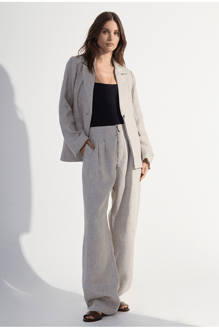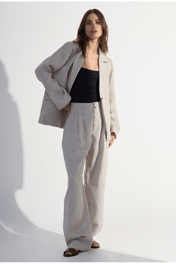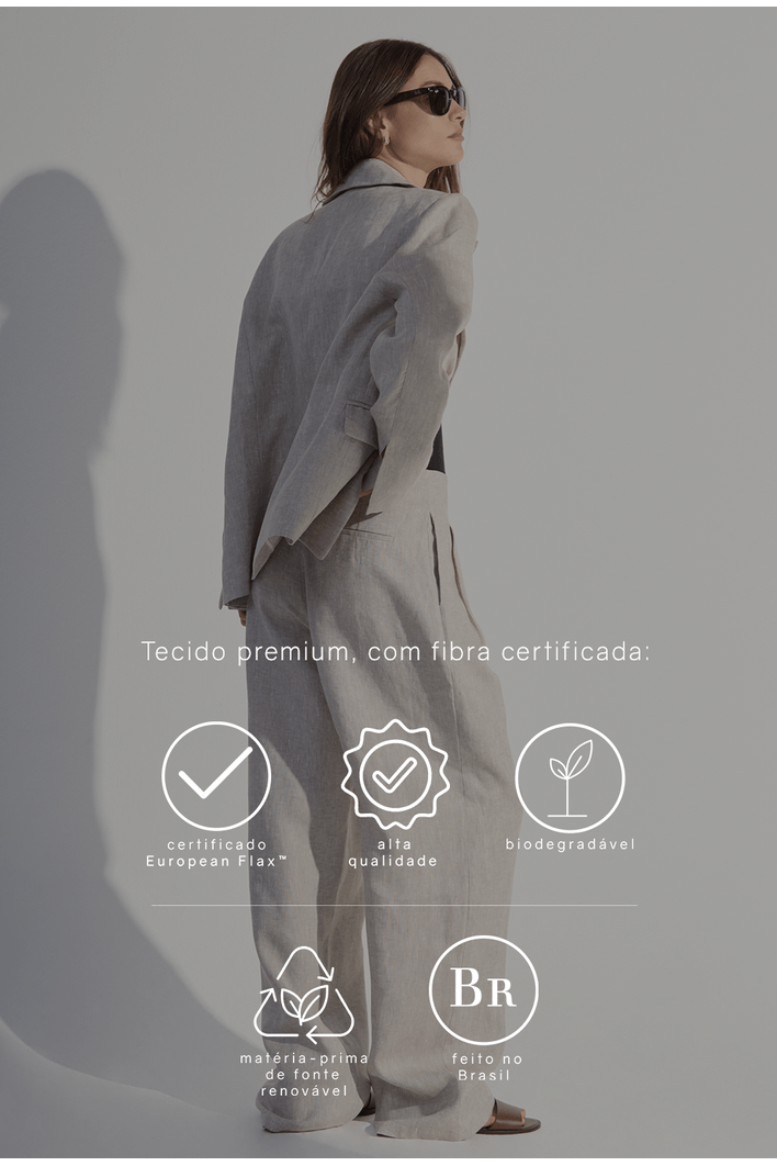 Com design atemporal e modelagem ampla, esta calça traduz a essência do conforto sofisticado. Confeccionada em 100% linho, oferece um caimento leve e fluido que acompanha o movimento do corpo com naturalidade. A fibra nobre proporciona toque fresco e alta respirabilidade, tornando a peça ideal para diferentes estações. O cós estruturado e as pregas frontais conferem elegância à silhueta, equilibrando estilo e praticidade. Versátil e durável, é uma escolha consciente que une estética minimalista e bem-estar em cada detalhe.