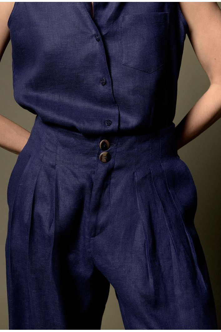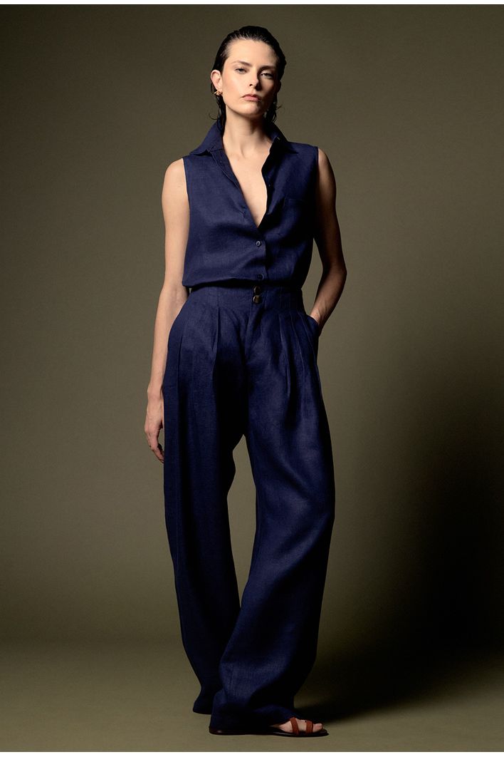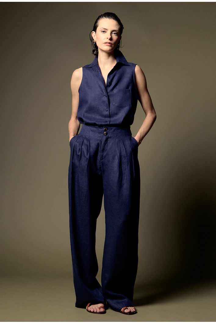 Com design atemporal e modelagem ampla, esta calça traduz a essência do conforto sofisticado. Confeccionada em 100% linho, oferece um caimento leve e fluido que acompanha o movimento do corpo com naturalidade. A fibra nobre proporciona toque fresco e alta respirabilidade, tornando a peça ideal para diferentes estações. O cós estruturado e as pregas frontais conferem elegância à silhueta, equilibrando estilo e praticidade. Versátil e durável, é uma escolha consciente que une estética minimalista e bem-estar em cada detalhe.
