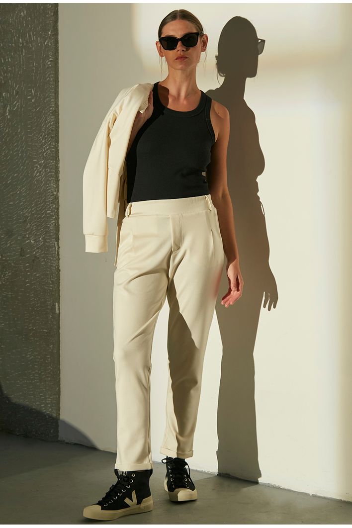 uma ótima combinação para nossa calça navarro são as busas: Samar, Catania e La Mona, que estão disponíveis nos mesmos tons, criando um look monocromático super confortável. Para quem busca um look mais chique uma boa ideia é combinar nossa navarro com uma de nossas camisas básicas, como a lâmia, e nos pés salto alto. Já para um look mais despojado uma ótima pedida é nossa blusa badajoz sobreposta com um de nossos cardigans, como o gerace, e nos pés um de nossos tênis vert.