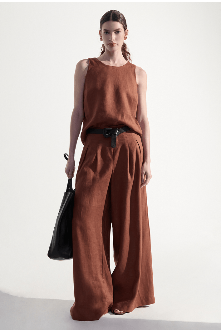 Com um toque leve e movimento impecável, esta calça de linho une simplicidade e elegância na medida certa. A modelagem pantalona oferece fluidez e conforto, enquanto o design limpo cria um visual moderno e despretensioso. Ideal para quem aprecia peças essenciais que elevam o look com naturalidade.