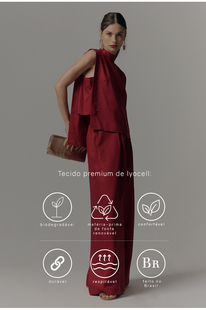 Feita em 100% Lyocell, uma fibra natural e sustentável, a peça oferece conforto extremo e leveza, ideal para o dia a dia ou ocasiões especiais. O Lyocell é conhecido por sua durabilidade, toque macio e excelente respirabilidade, além de ser produzido com baixo impacto ambiental. Com modelagem pantalona, a calça proporciona um caimento fluido e elegante. O elástico na cintura garante um ajuste perfeito ao corpo, unindo conforto e praticidade. Os bolsos laterais adicionam funcionalidade, enquanto o botão frontal delicado e sofisticado completa o design atemporal. Uma peça versátil que pode ser combinada tanto com peças casuais quanto com opções mais elegantes.