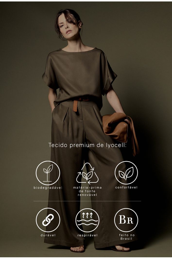 Feita em 100% Lyocell, uma fibra natural e sustentável, a peça oferece conforto extremo e leveza, ideal para o dia a dia ou ocasiões especiais. O Lyocell é conhecido por sua durabilidade, toque macio e excelente respirabilidade, além de ser produzido com baixo impacto ambiental.