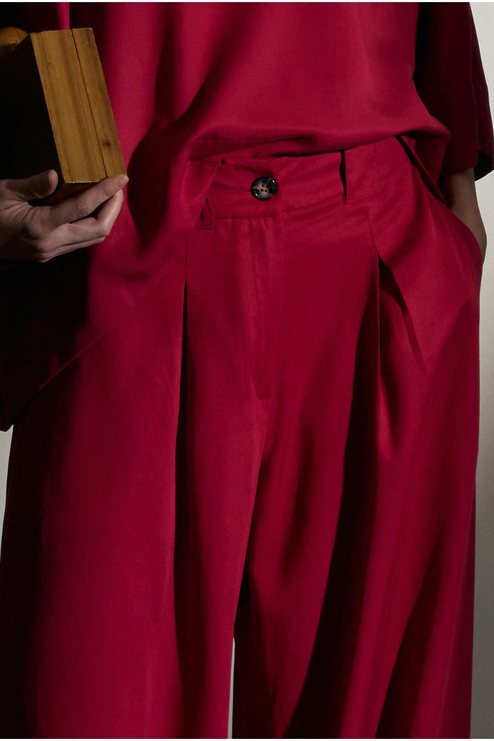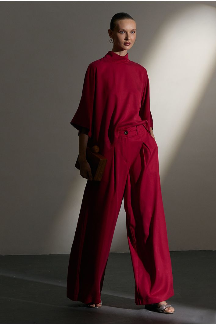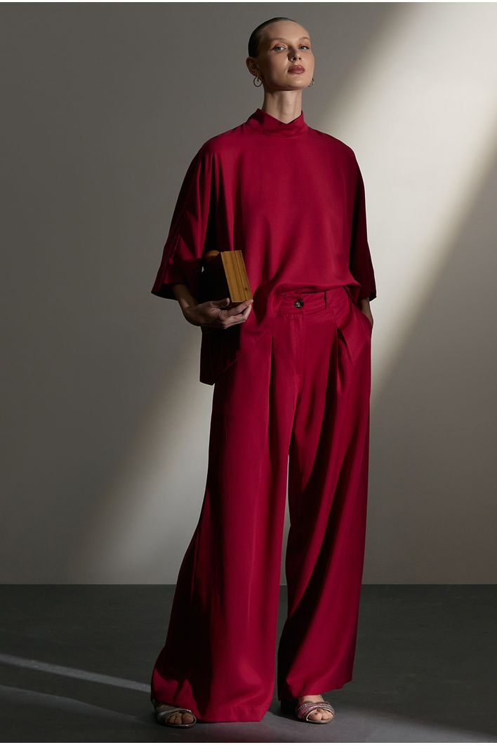 Com modelagem pantalona, a calça proporciona um caimento fluido e elegante. O elástico na cintura garante um ajuste perfeito ao corpo, unindo conforto e praticidade. Os bolsos laterais adicionam funcionalidade, enquanto o botão frontal delicado e sofisticado completa o design atemporal. Uma peça versátil que pode ser combinada tanto com peças casuais quanto com opções mais elegantes.