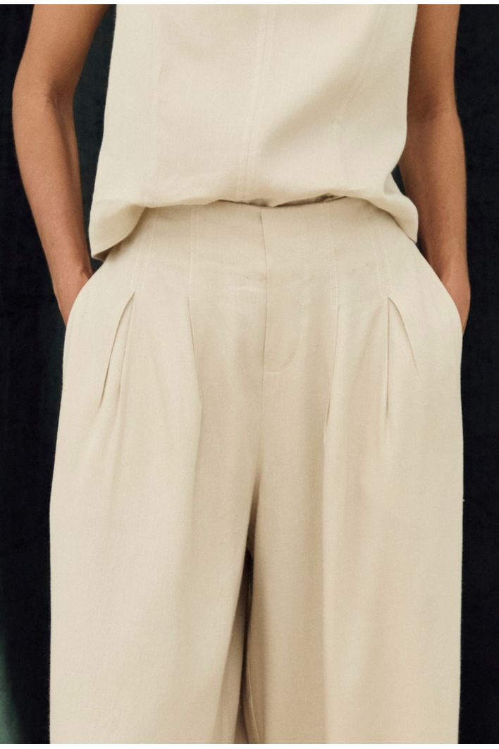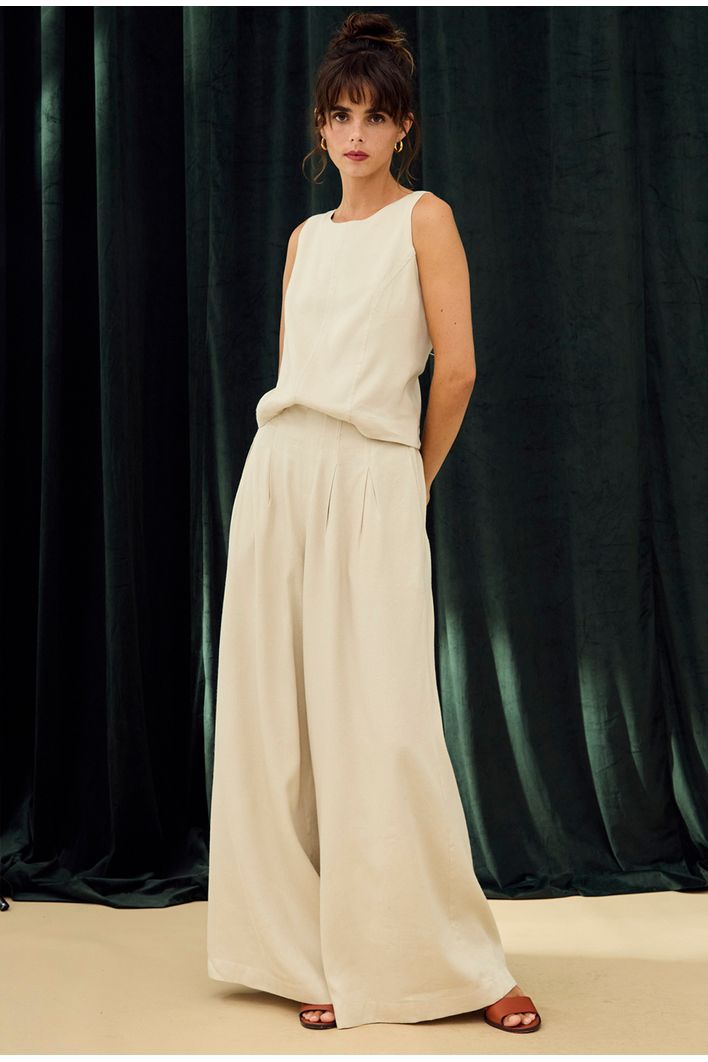 Com modelagem de decote nadador, a regata traz um design elegante e contemporâneo, valorizado por recortes delicados ao longo do comprimento. Desenvolvida em uma mistura refinada de linho orgânico e viscose certificada FSC, a peça garante um toque macio, frescor e excelente caimento. Além disso, sua matéria-prima é de fonte renovável e biodegradável, unindo estilo e consciência ambiental. Perfeita para composições versáteis, do casual ao sofisticado.